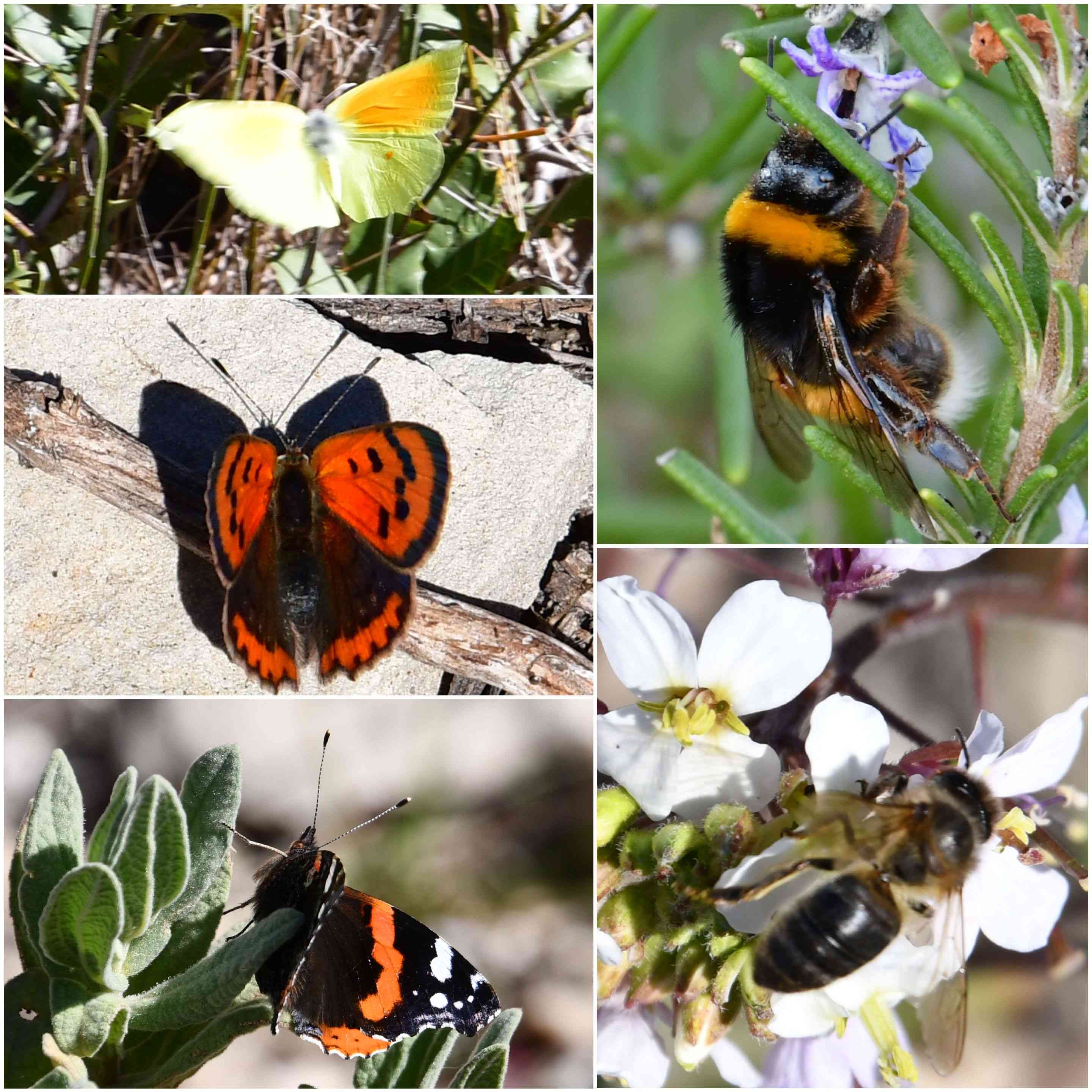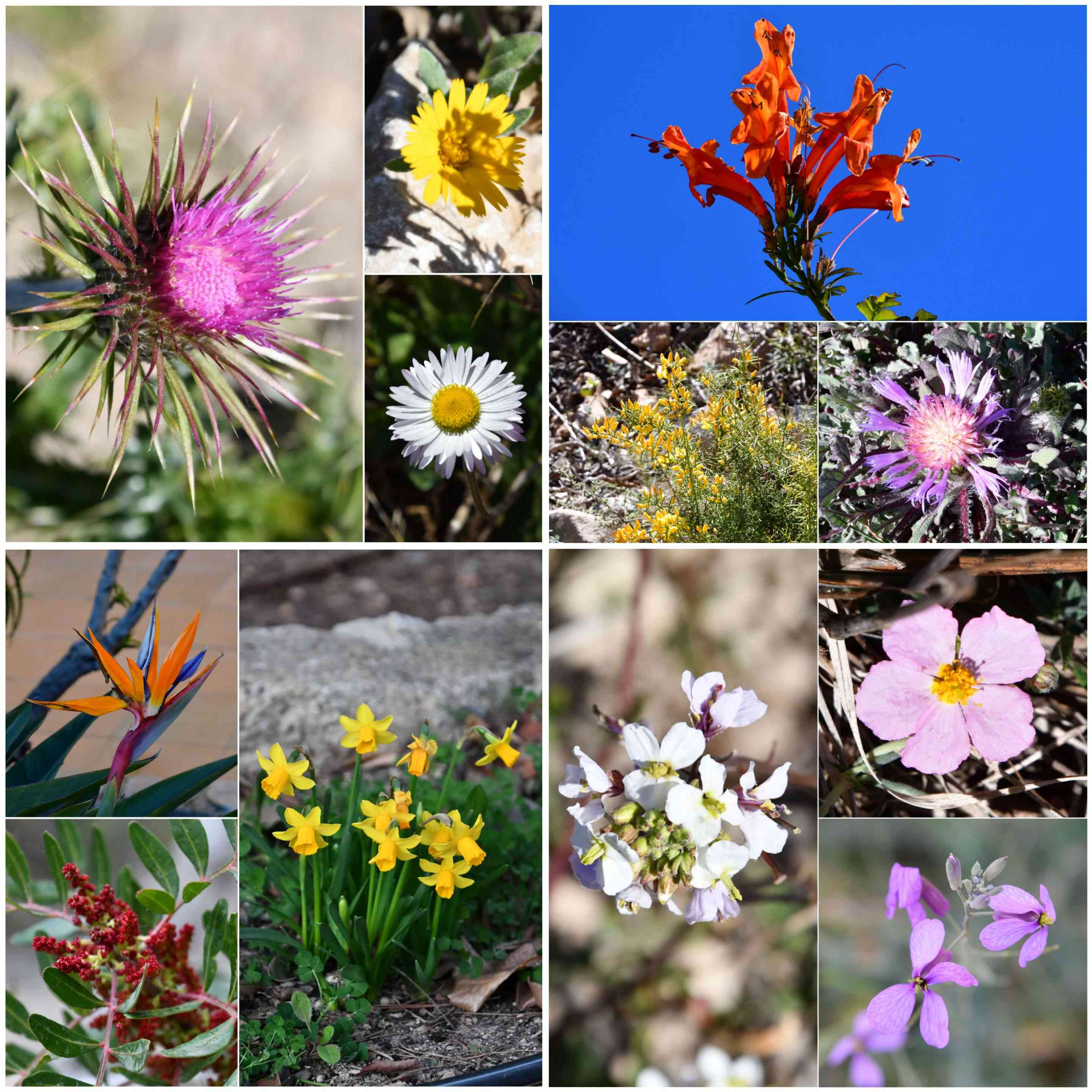 The hike leads us up a hill, with many almond trees (some stand in a field full of daisies) and lovely flowers