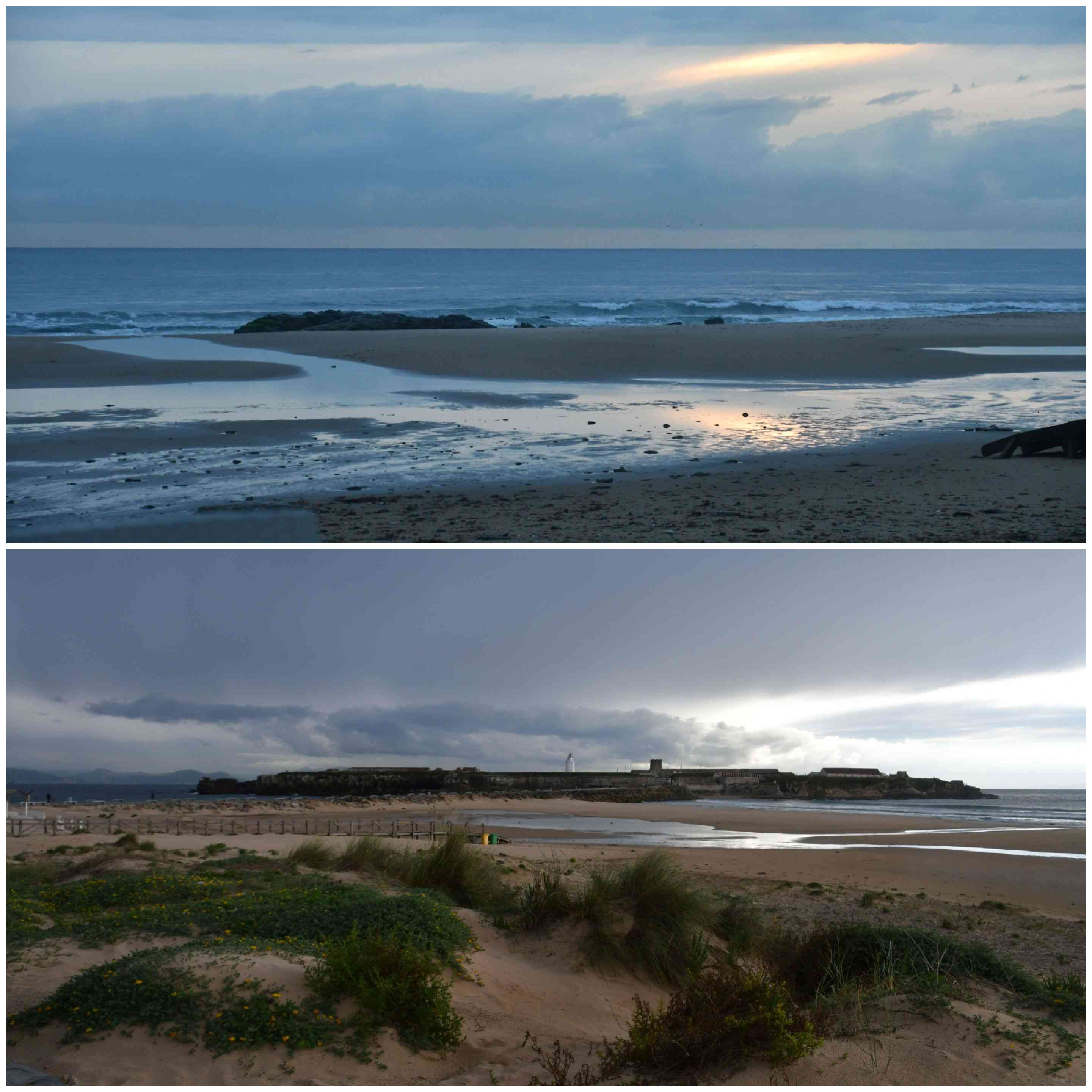 Our spot for the night was above Tarifa, so we had a good view of the viillage and across the sea to Morocco. It’s a bird watching place, and apparently you can see thousands of migrating birds in spring and autumn. Unfortunately it was too cold 😦
