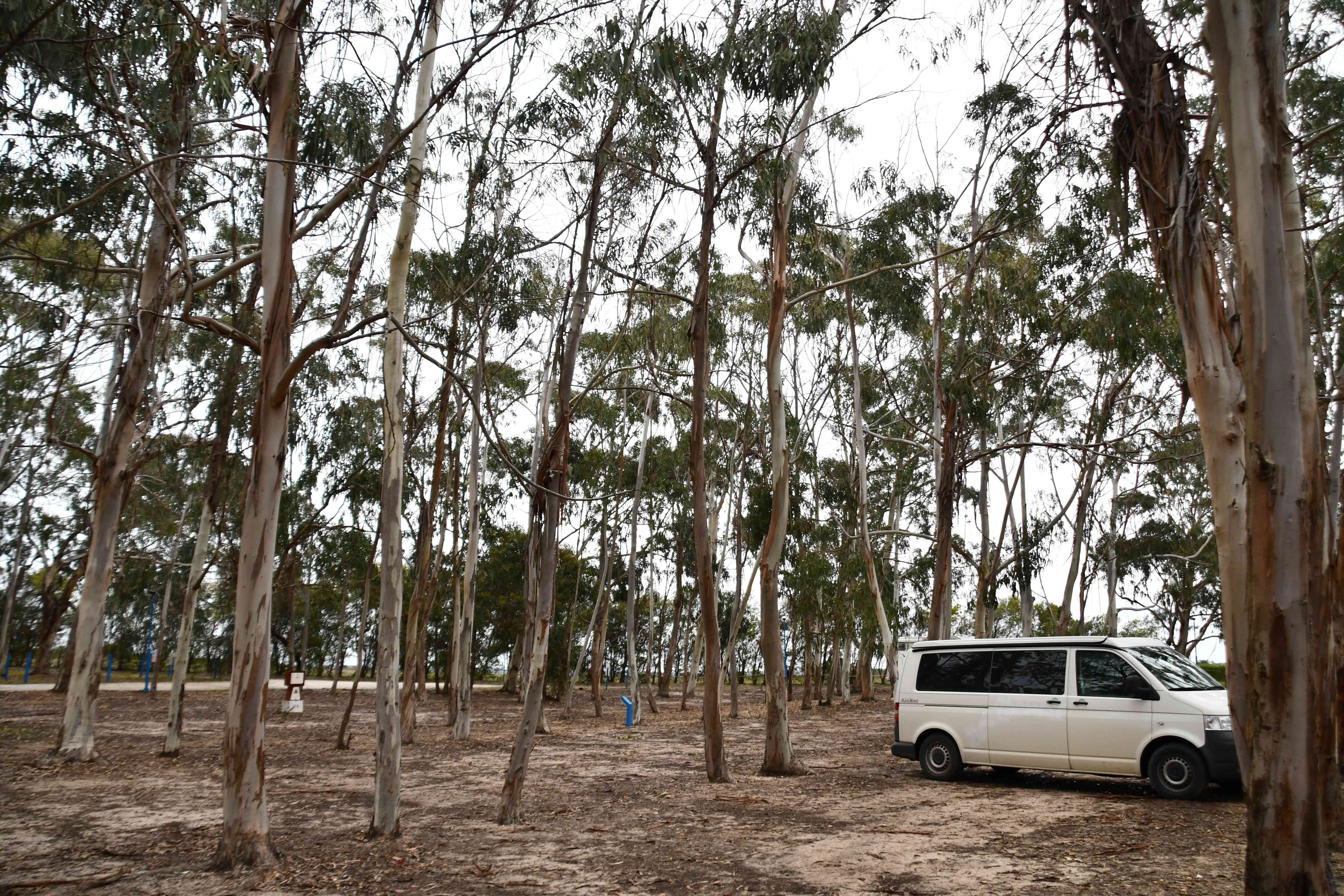 On the way back to the campsite, where we parked between lots of eucalyptus trees. The smell was lovely !