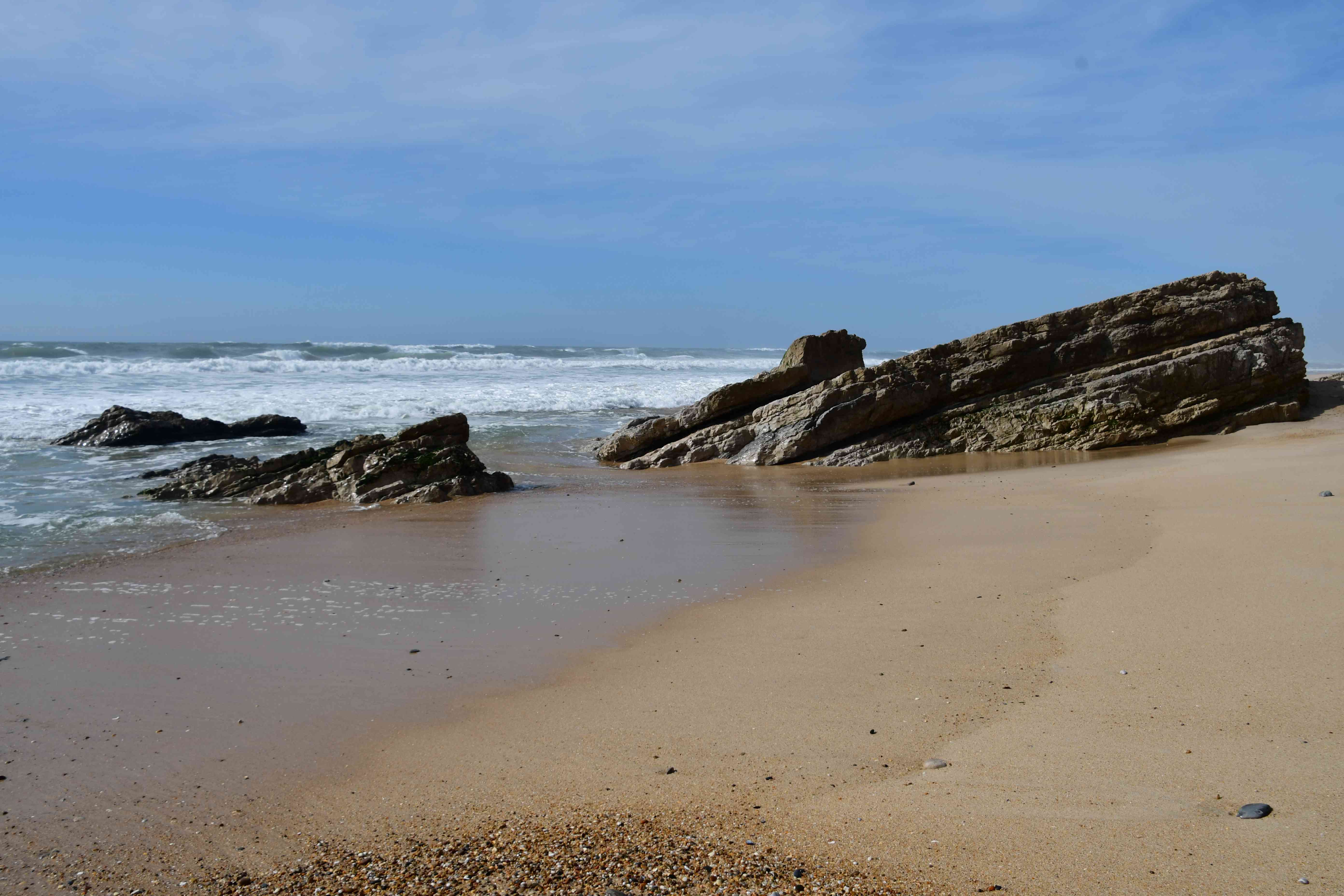 On the Praia da Polvoeira it was much calmer, despite the high waves !