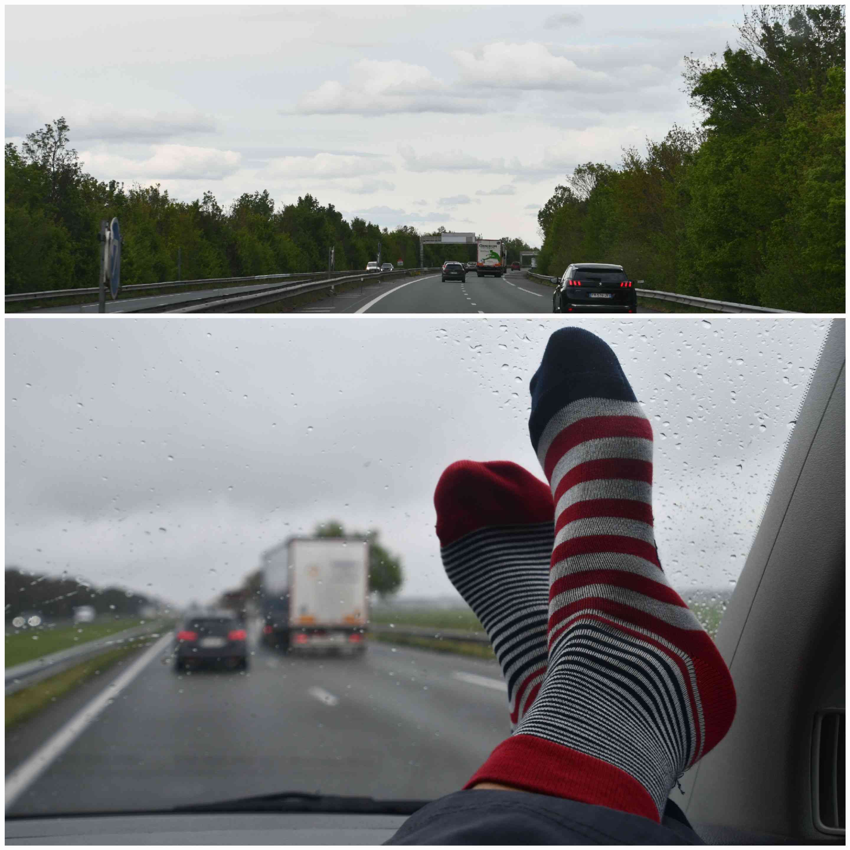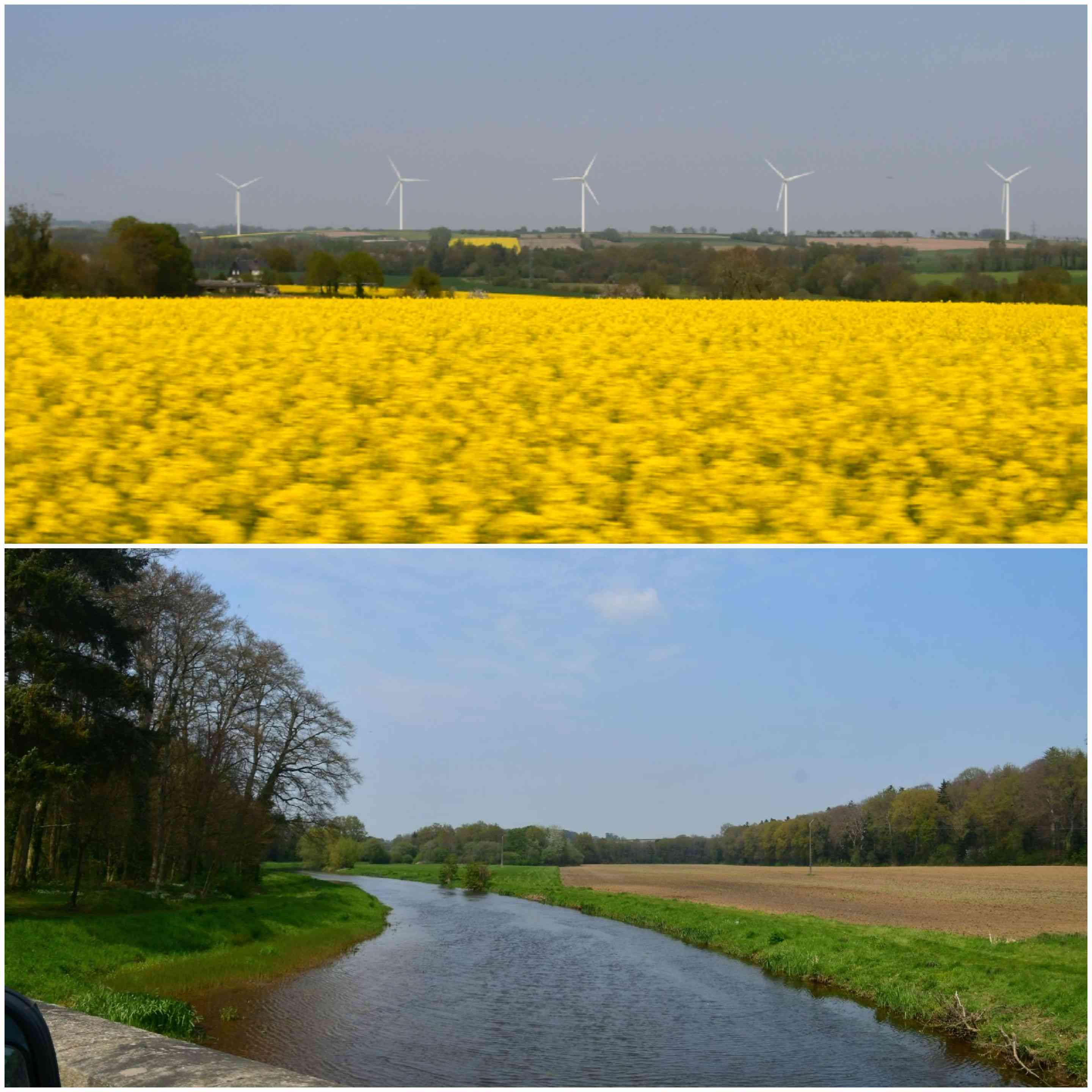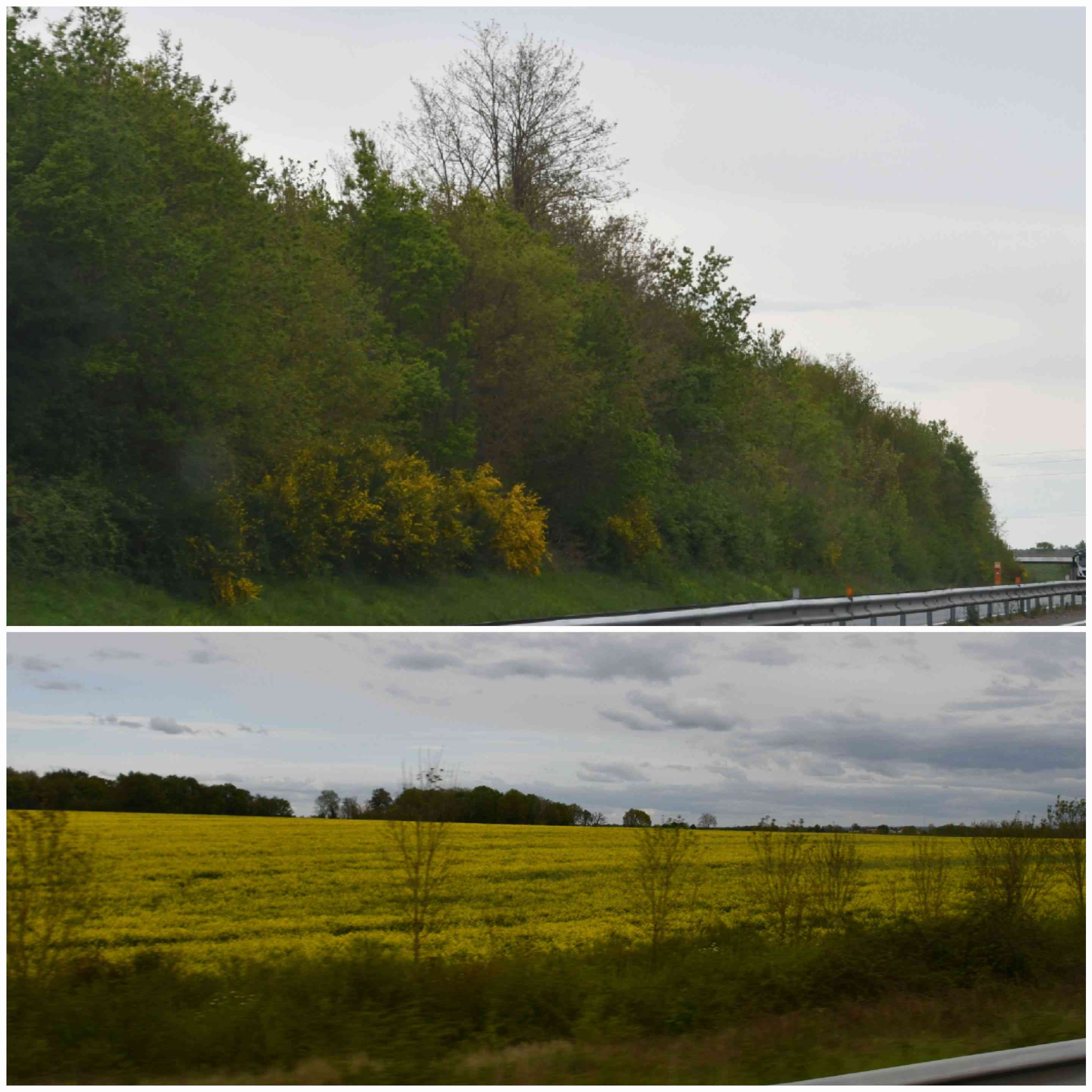 We chose one of the first Crêperies in Brittany as our next destination. It happened to be the Crêperie Au Cottage in Bourg des Comptes, a bit south of Rennes. The galettes and crêpes were yummy 🙂 To get there, we drove through rain, a traffic jam near Bordeaux, and past a lot of gorse and fields full of rapeseed.
