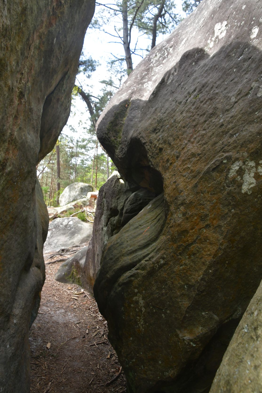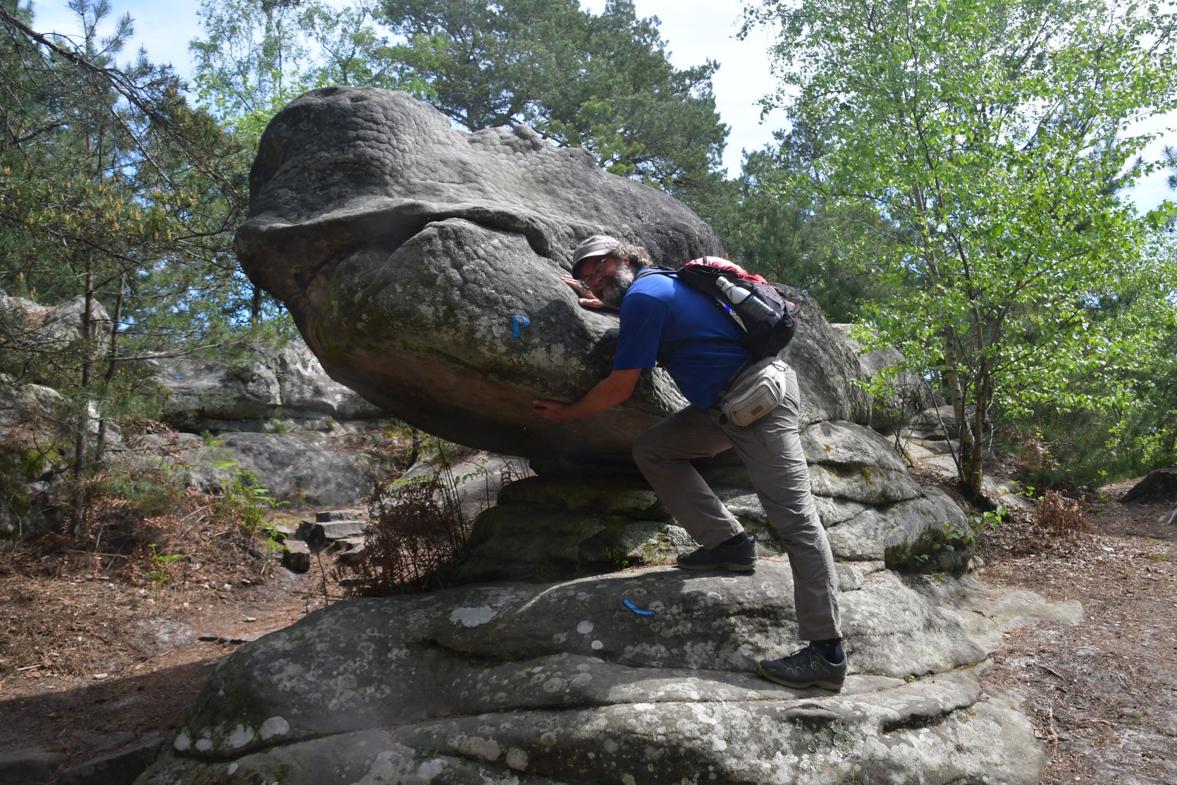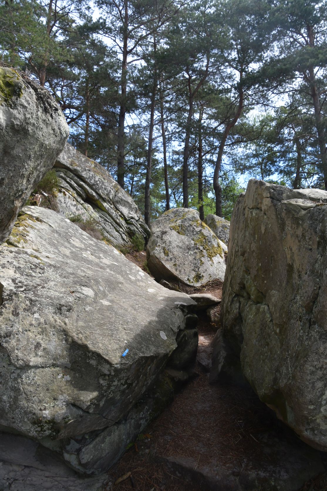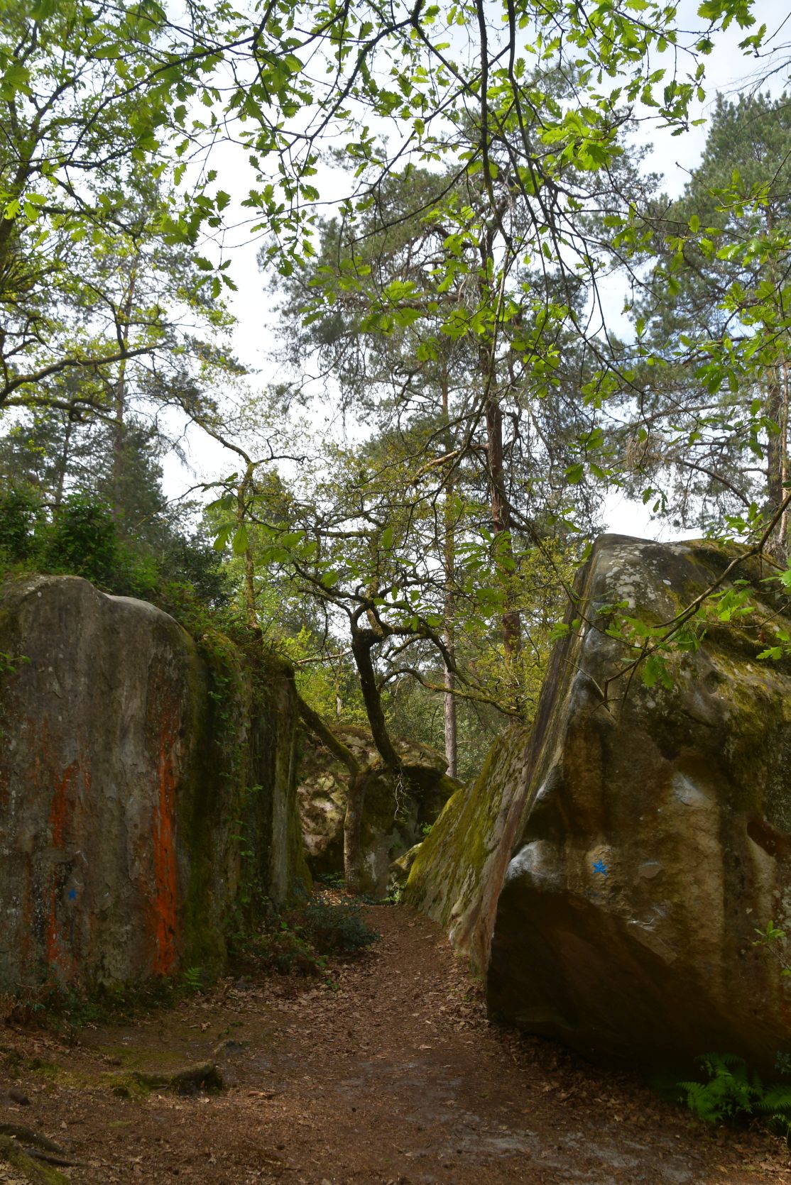 On the way home we stopped for a night at Fontainebleau. It’s a big forest, with lots of sandstone. All through the forest there are paths, and plenty of walks to chose from. The signposts were often very small and could easily be missed 😉