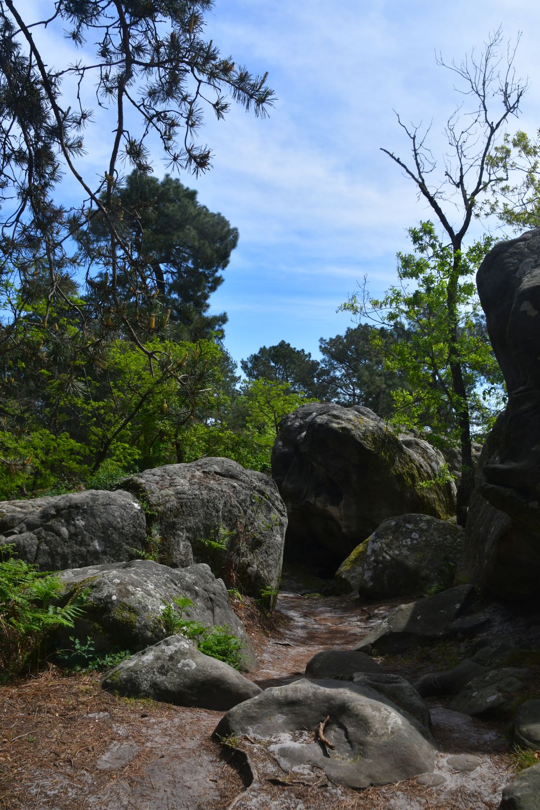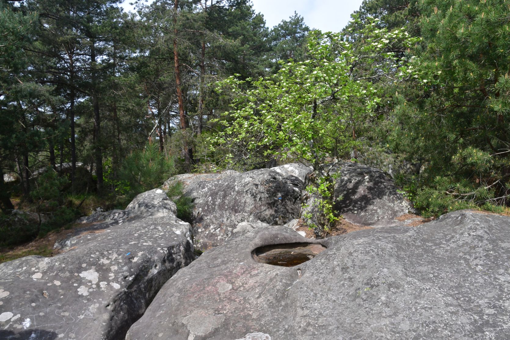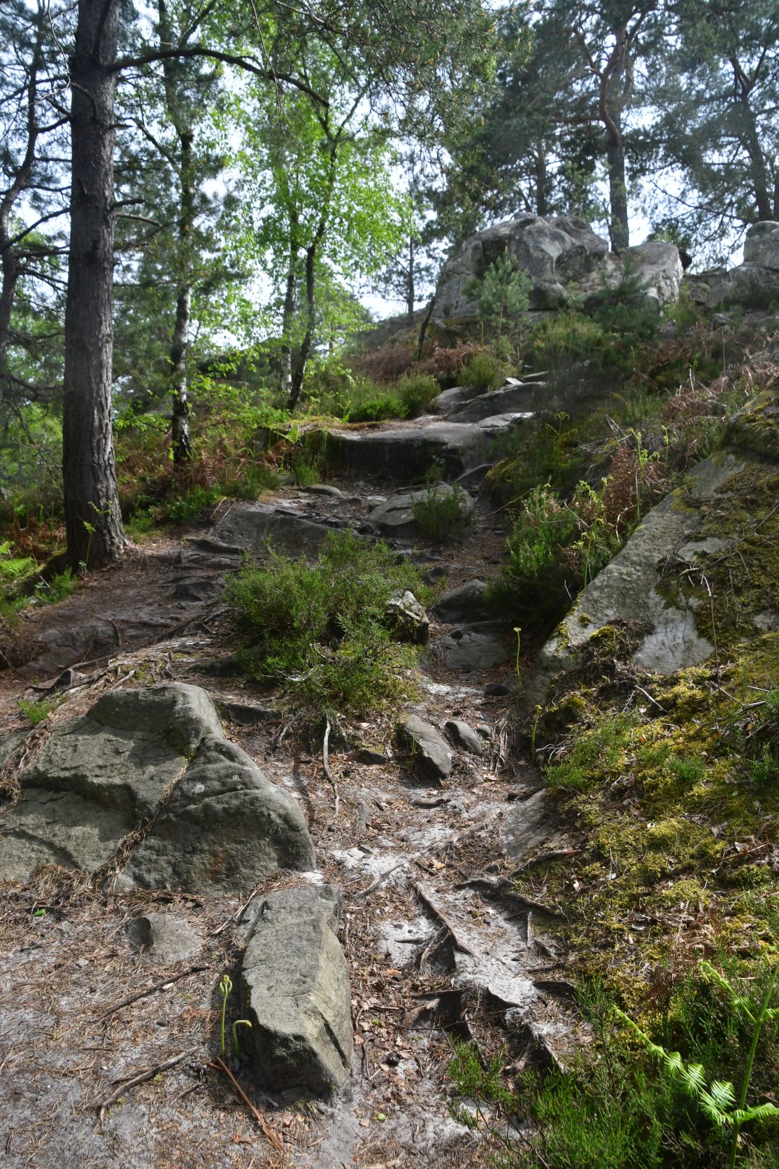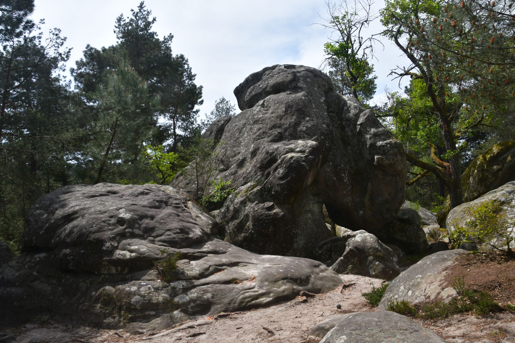 On the way home we stopped for a night at Fontainebleau. It’s a big forest, with lots of sandstone. All through the forest there are paths, and plenty of walks to chose from. The signposts were often very small and could easily be missed 😉