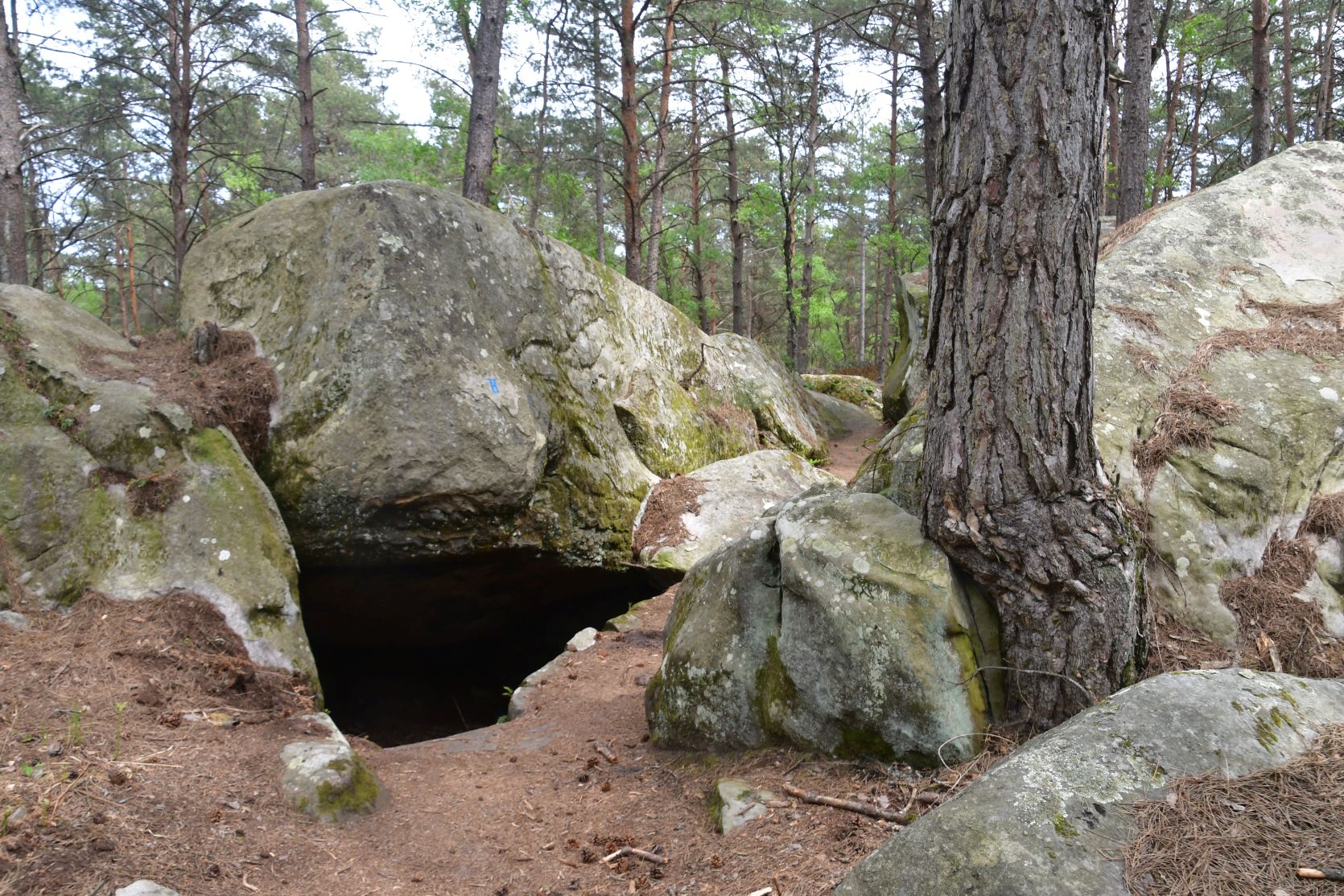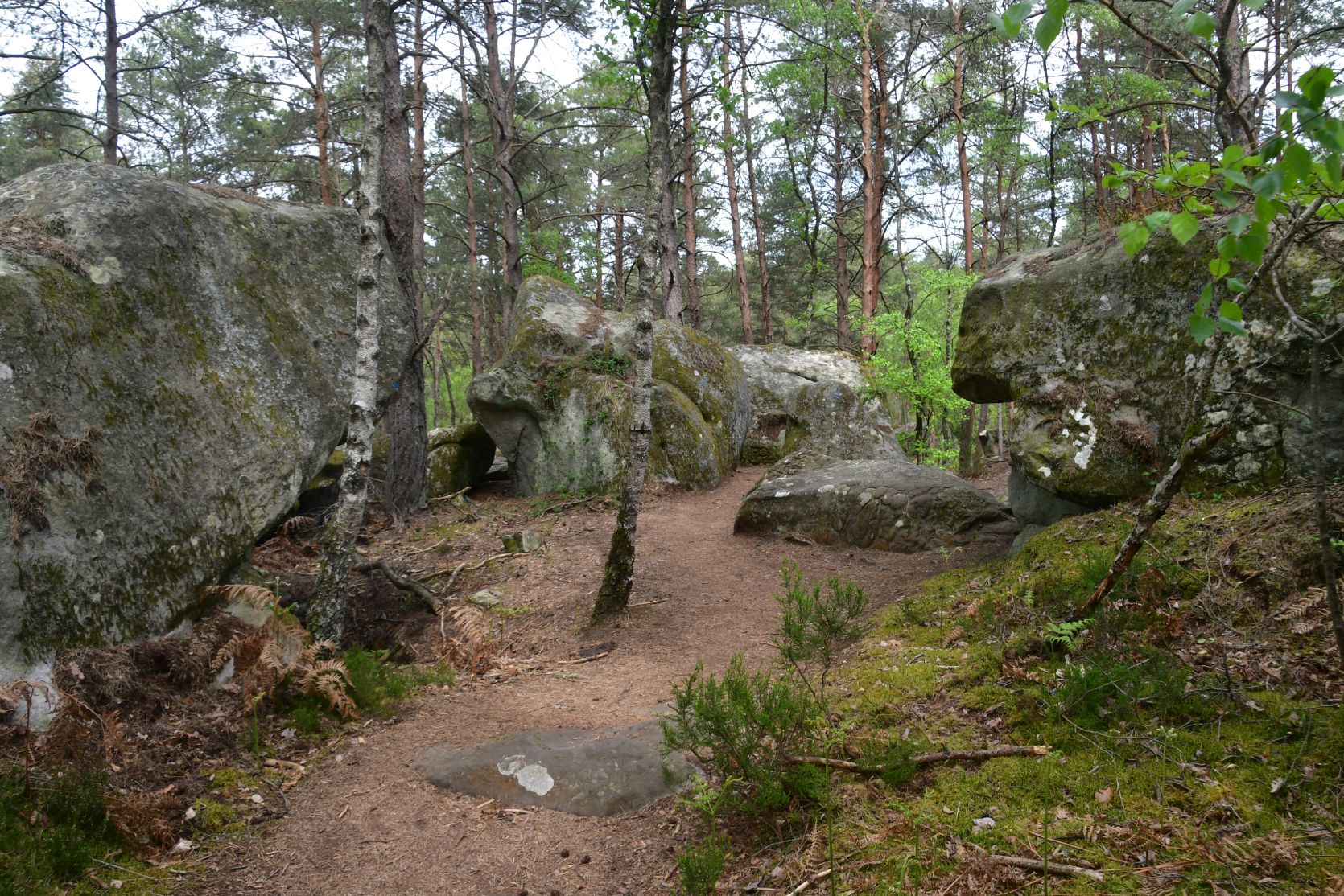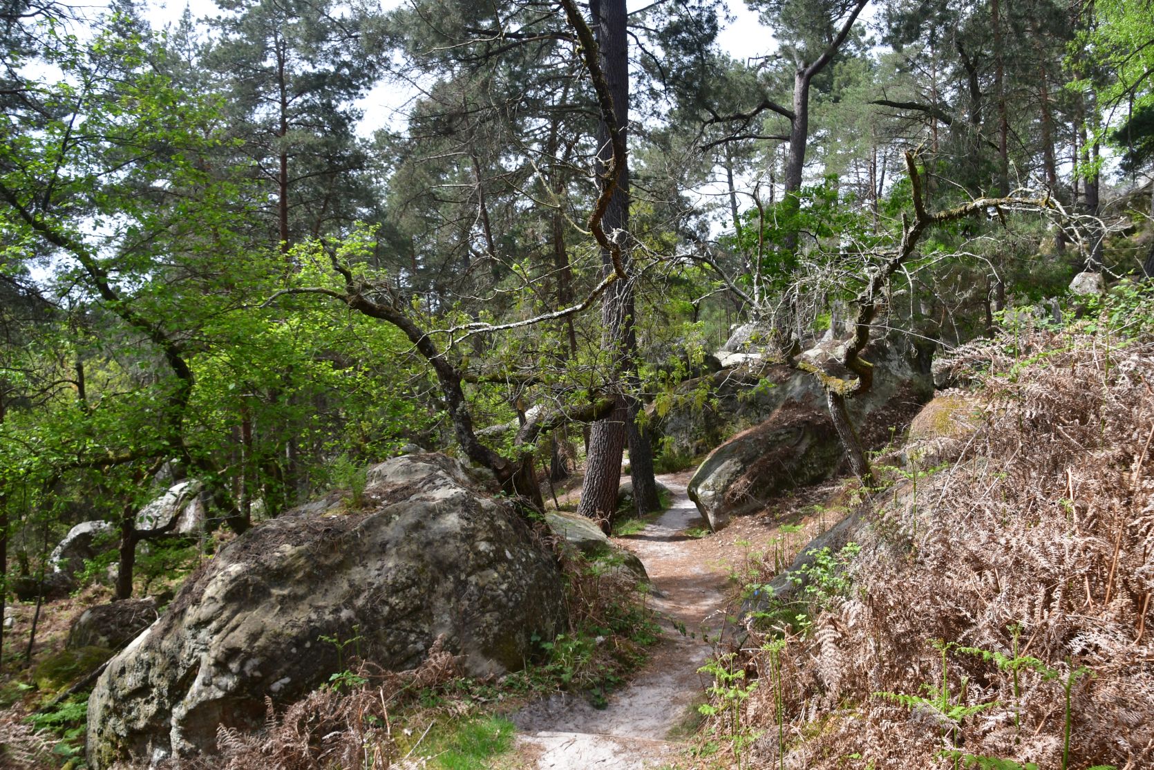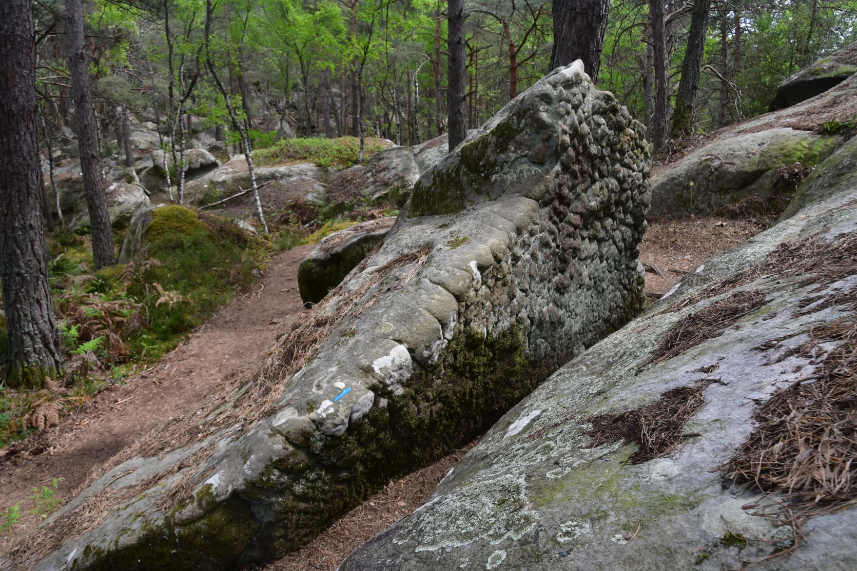 On the way home we stopped for a night at Fontainebleau. It’s a big forest, with lots of sandstone. All through the forest there are paths, and plenty of walks to chose from. The signposts were often very small and could easily be missed 😉