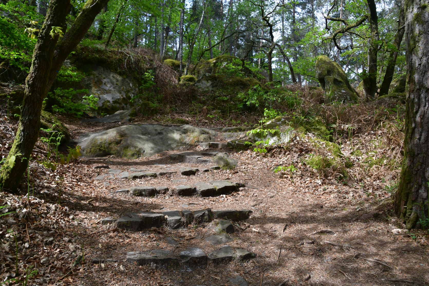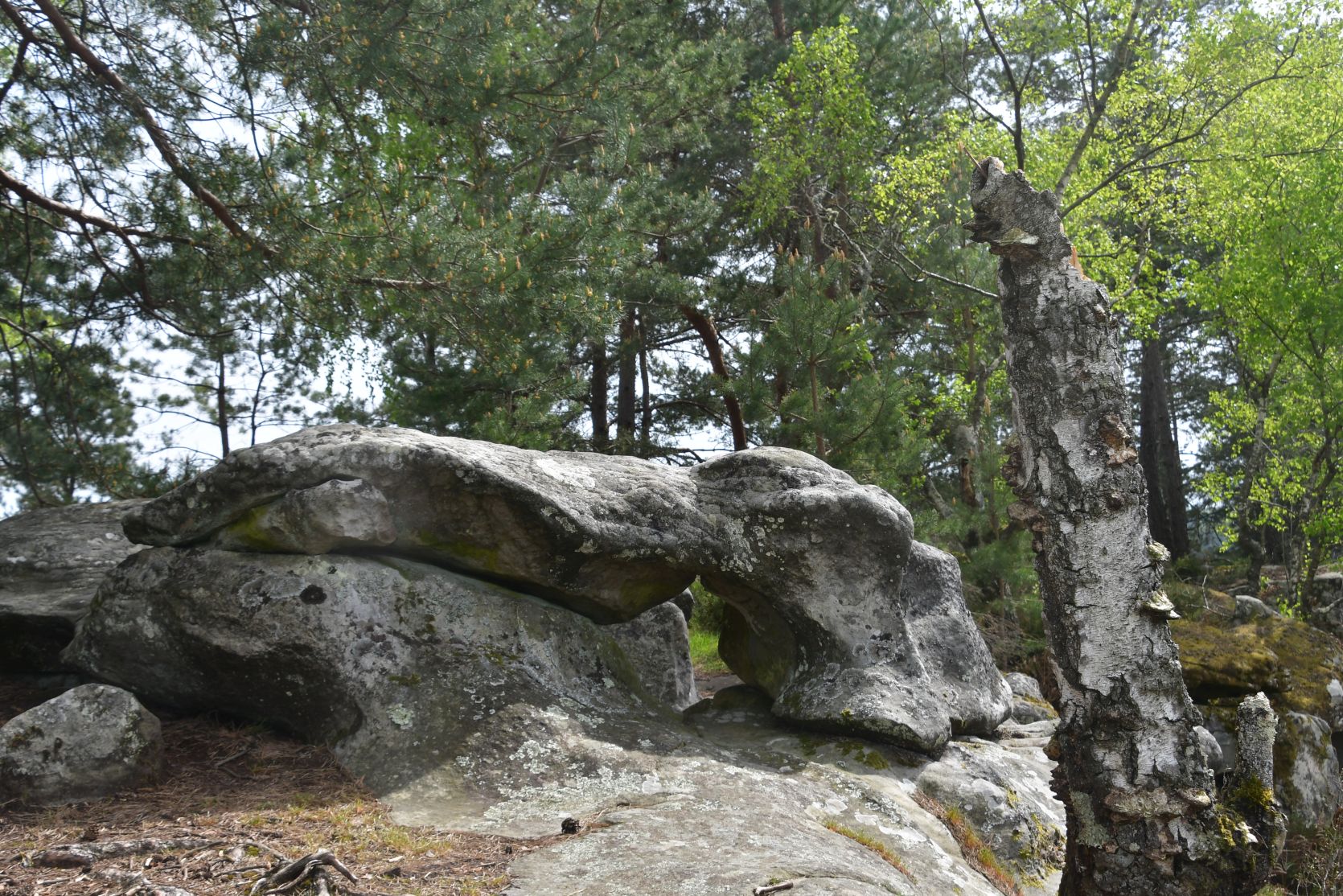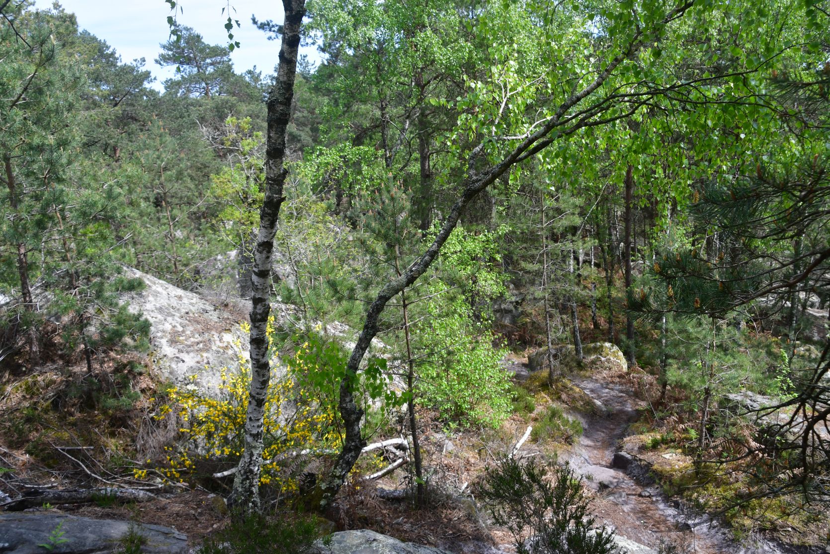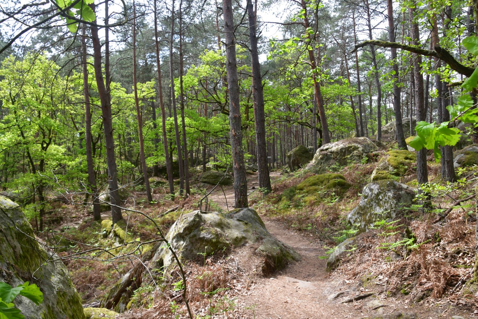 On the way home we stopped for a night at Fontainebleau. It’s a big forest, with lots of sandstone. All through the forest there are paths, and plenty of walks to chose from. The signposts were often very small and could easily be missed 😉