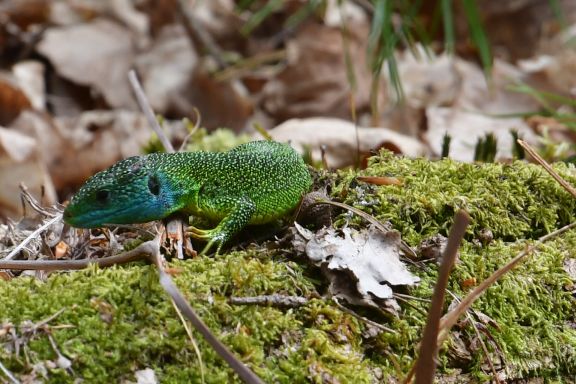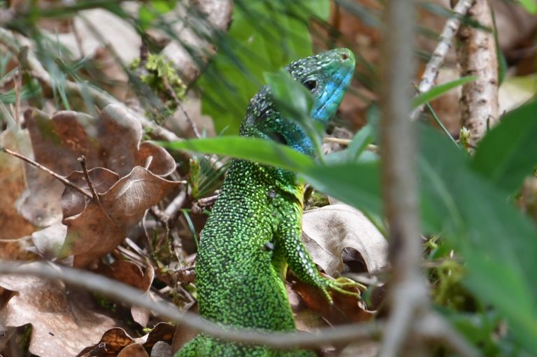 A beautiful green lizard …
