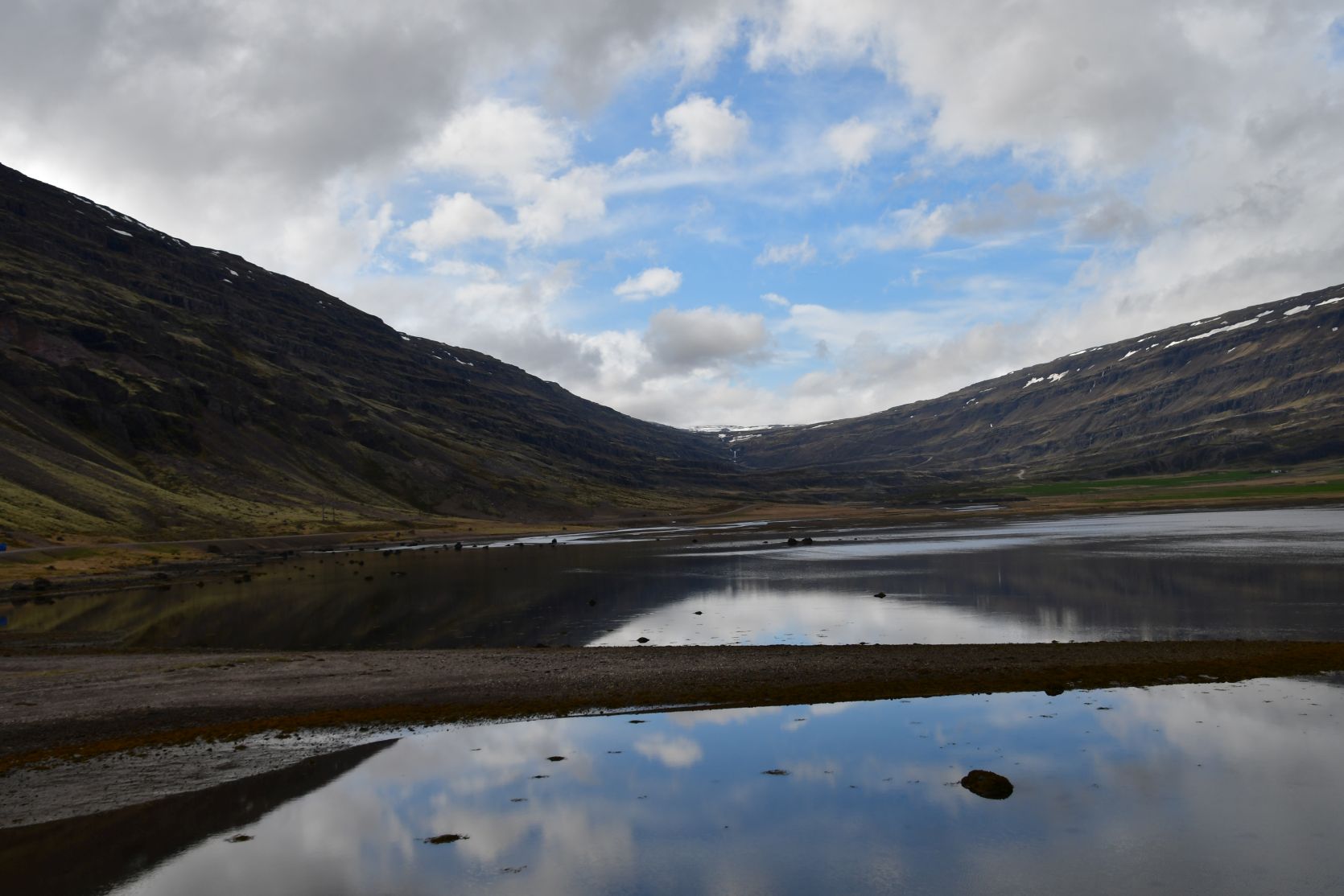 Getting off the ferry, happy to be in Iceland again ! We only got some groceries in Seyðisfjörður and headed off over the pass. There was still some snow!. Last year we spent a lot of time in and around this village, we know it quite well already!
