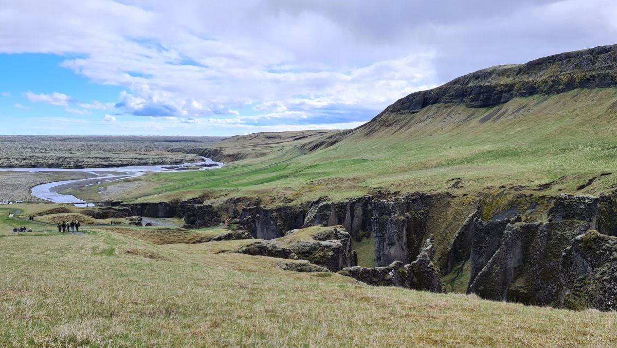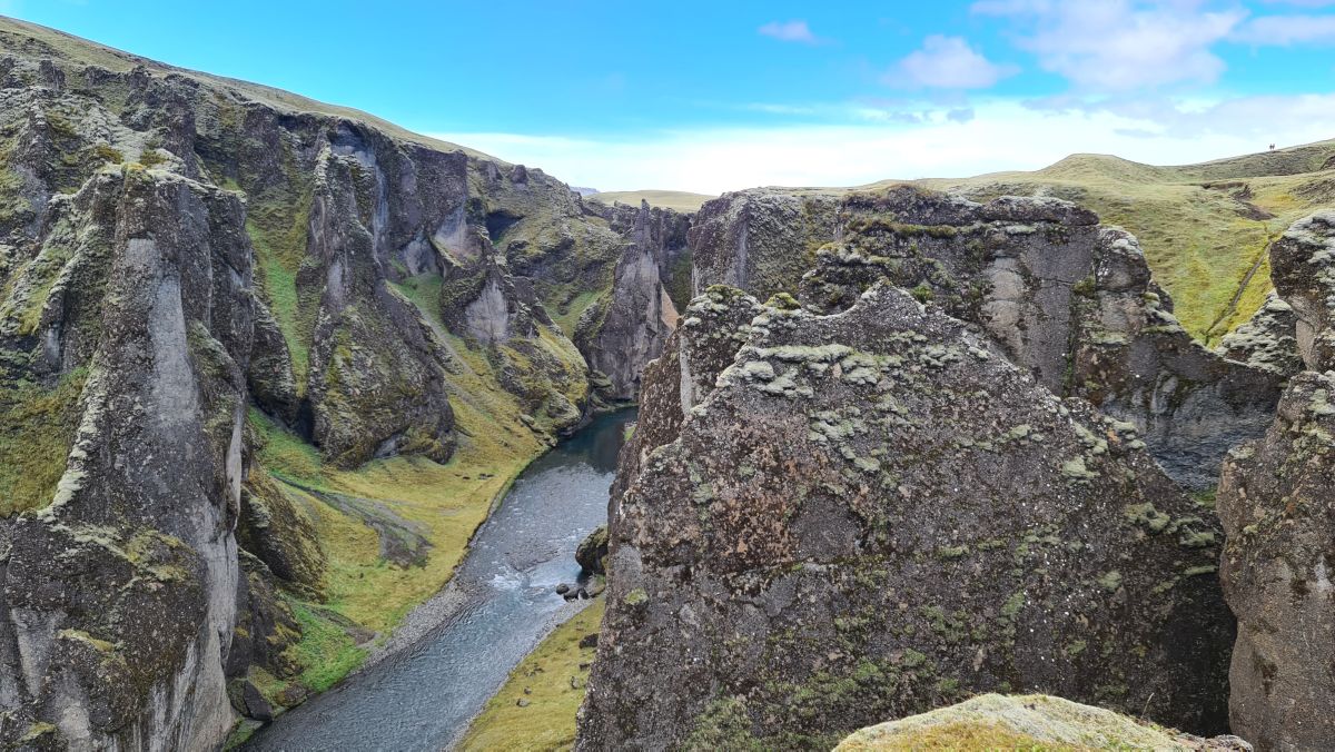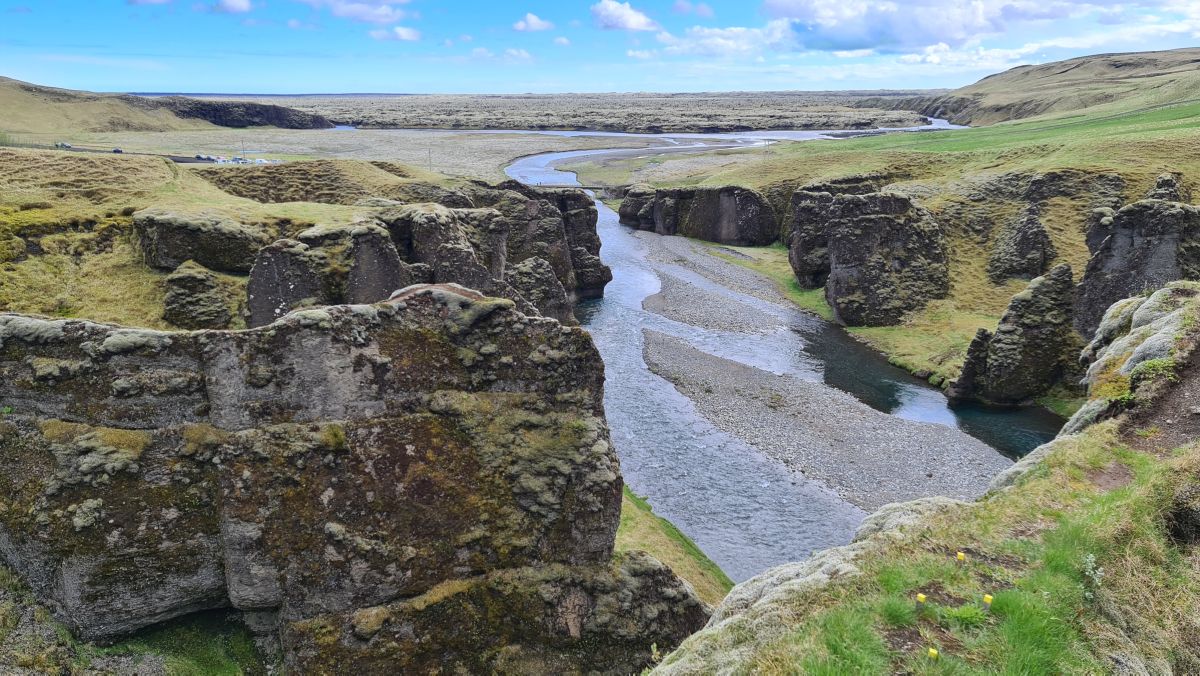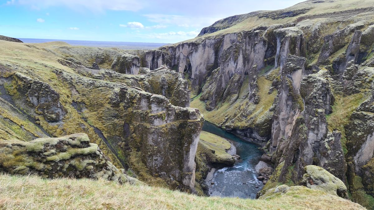 Kurz nach Kirkjubæjarklaustur machten wir eine kleine Wanderung in der Schlucht Fjaðrárgljúfur.