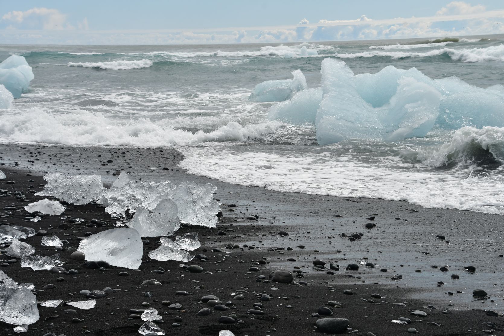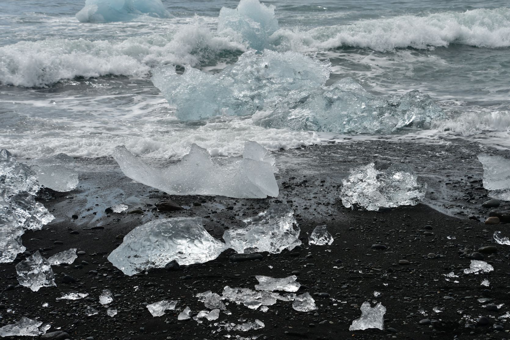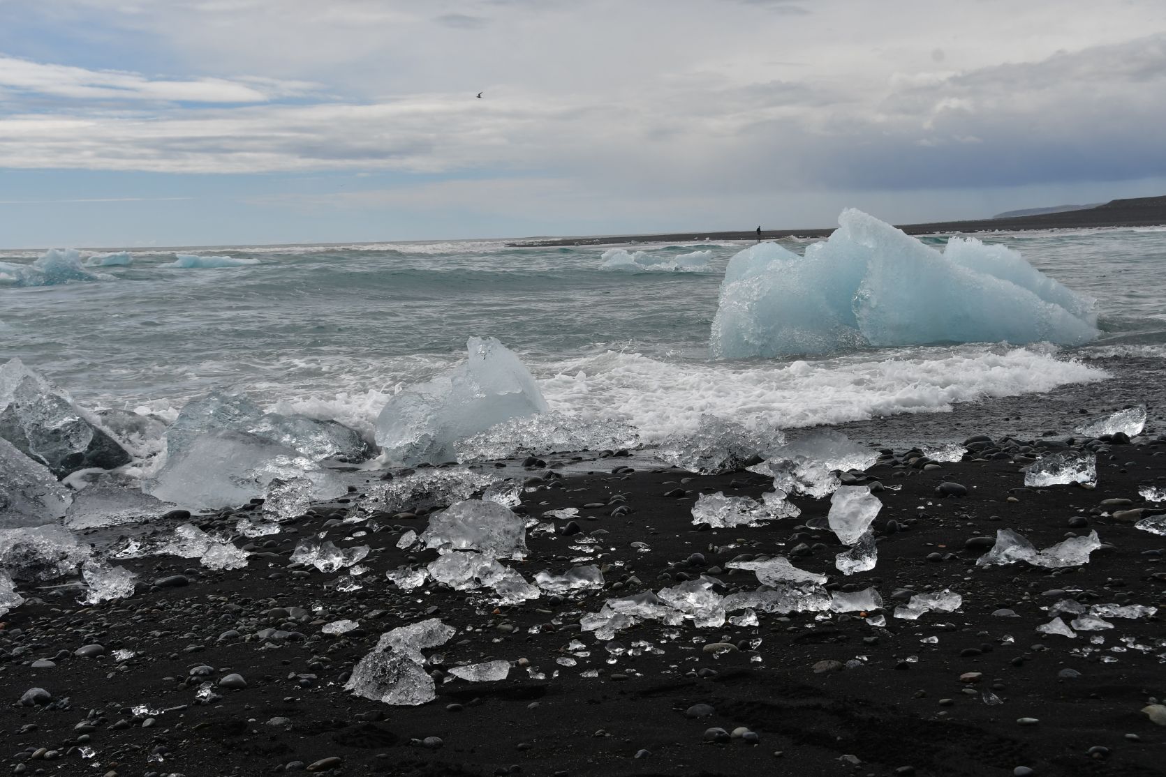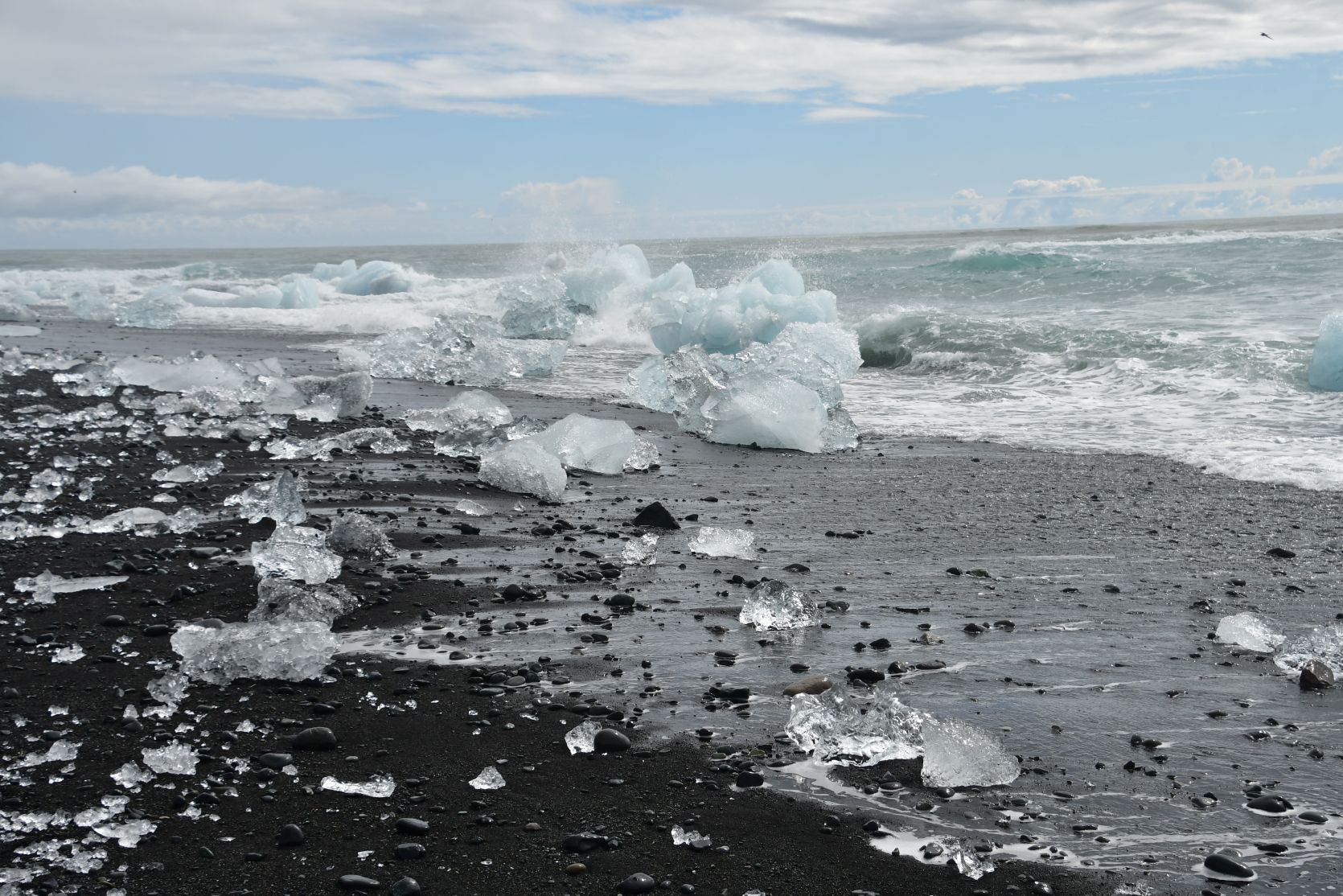 Lots of ice blocks on the black beach at Jökulsárlón!
