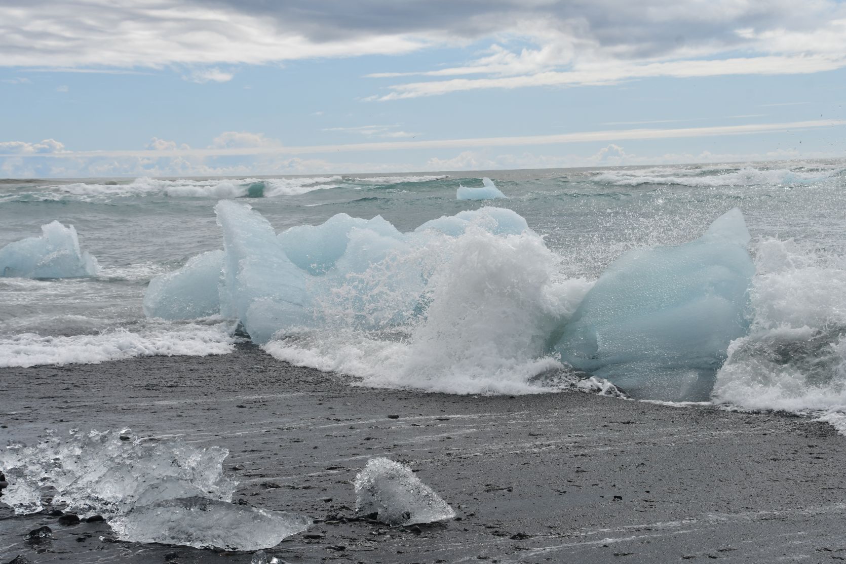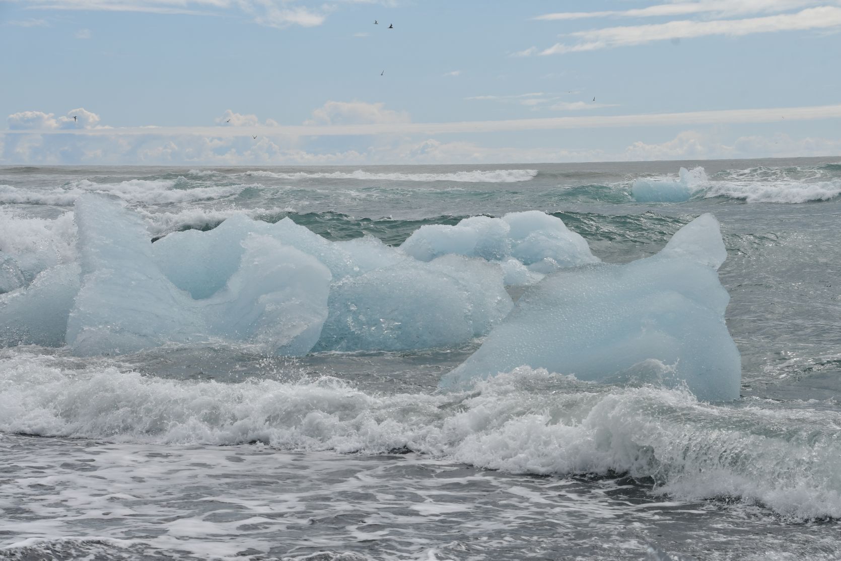Die Eisblöcke schwimmen von der Gletscherlagune ins Meer – manchmal auch wieder zurück 😉