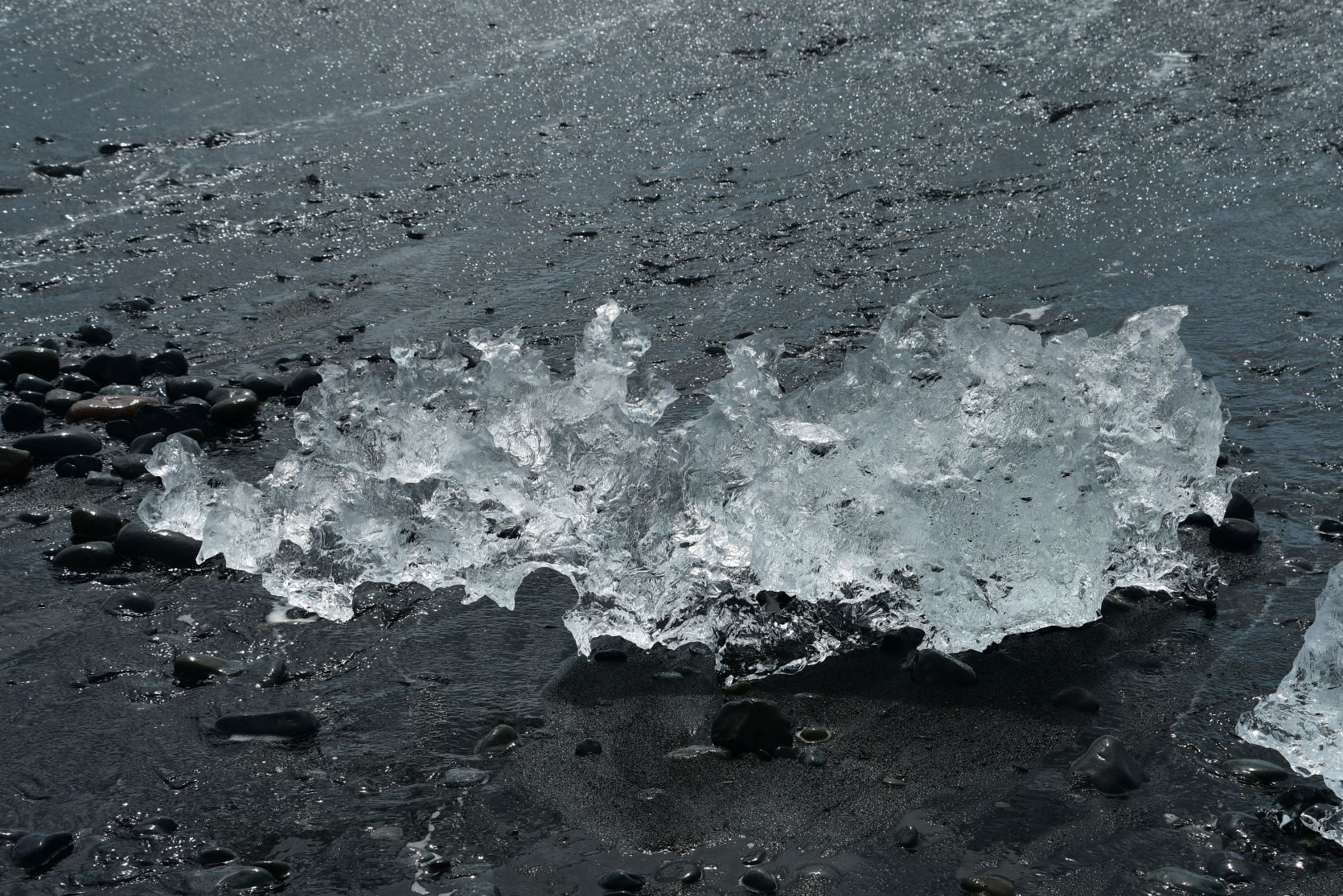 Beim Jökulsárlón hatte es viele Eisblöcke auf dem schwarzen Sand !