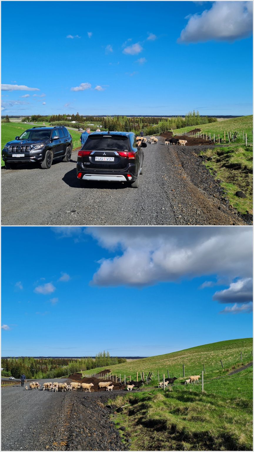 Eine kleine Pause, damit die Schafe die Strasse überqueren konnten.