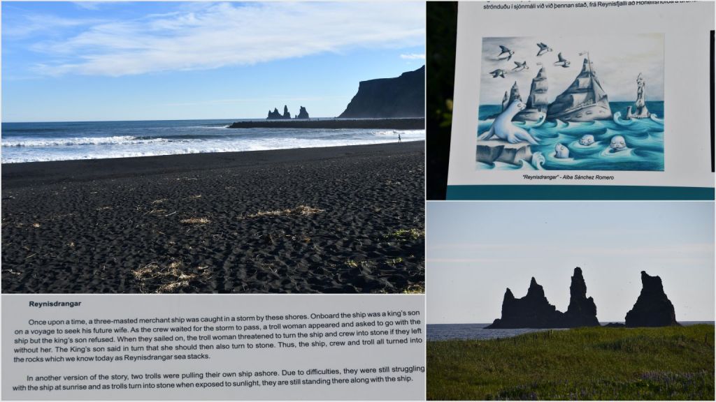 Es gibt eine Geschichte, wie diese Felsnadeln entstanden sind. In Island gibt es viele Sagen. Meistens handeln sie von versteinerten Trollen oder Elfen.