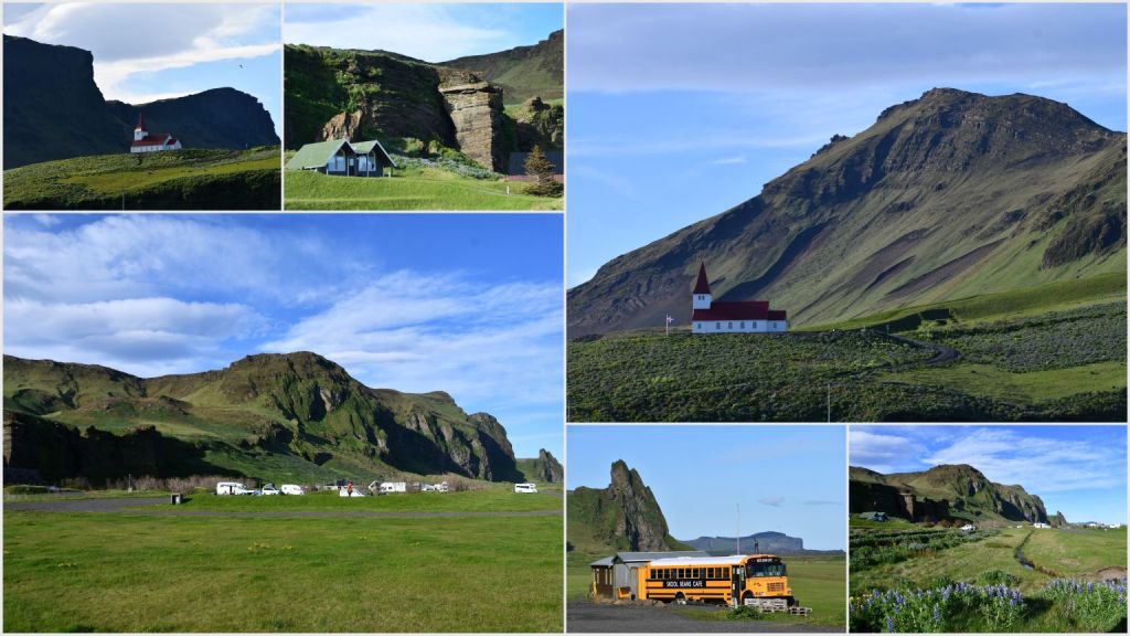We arrived at Vik. The photo on the bottom left shows the campsite.