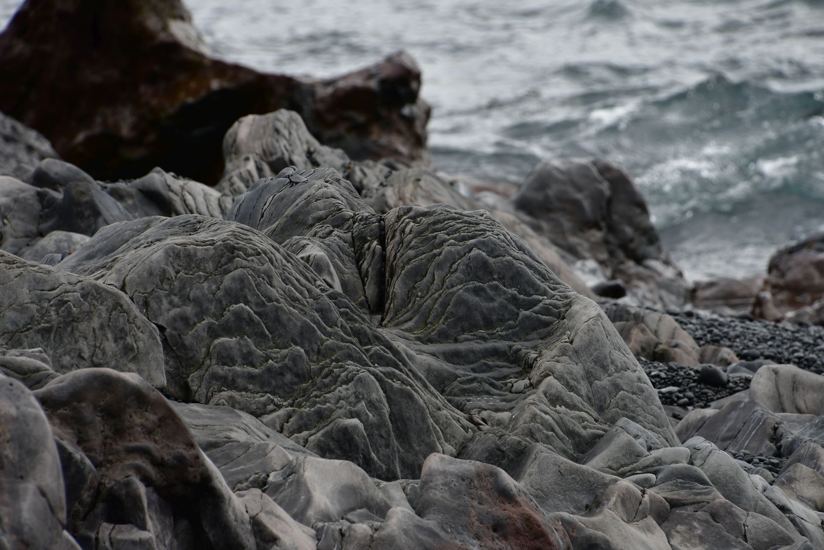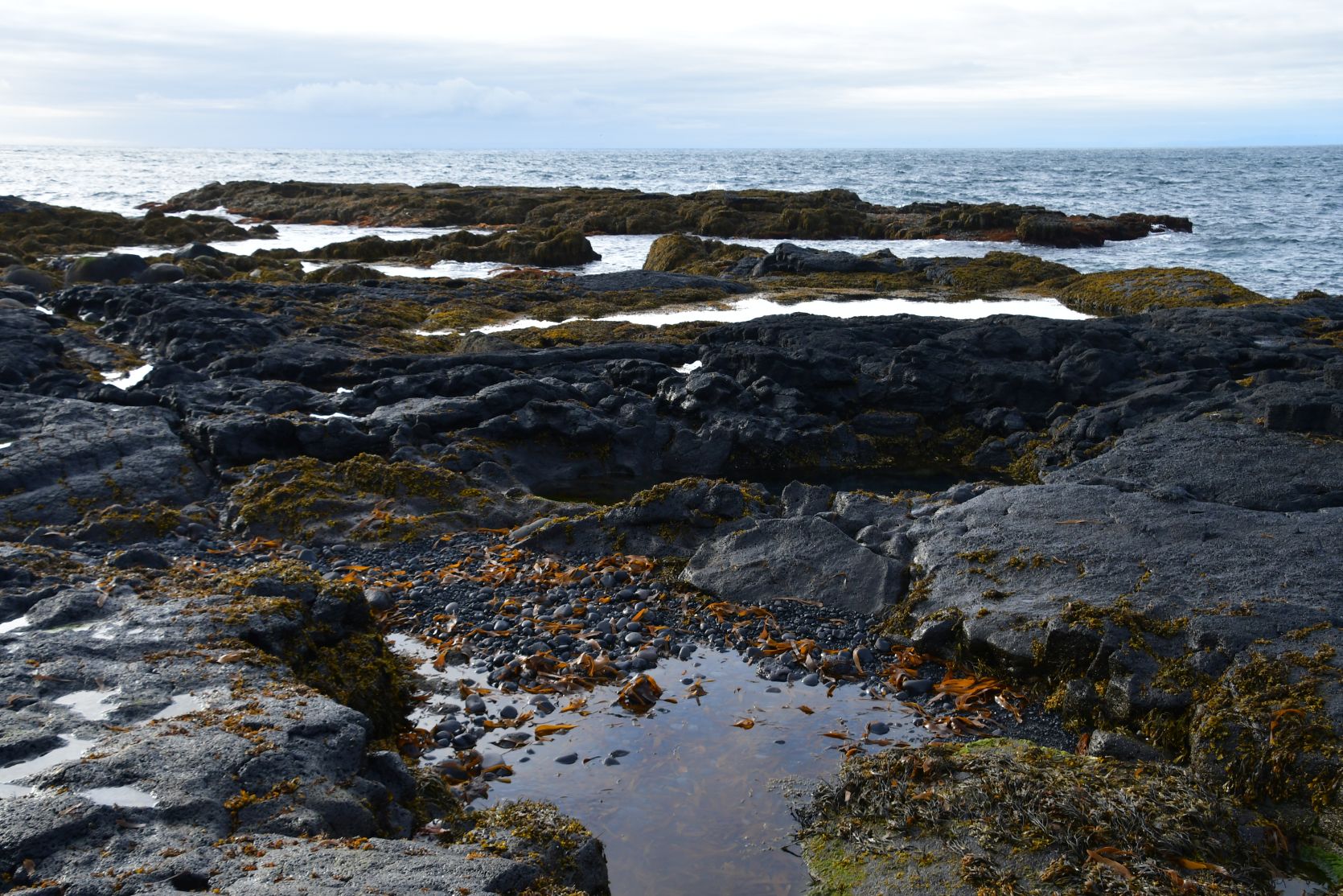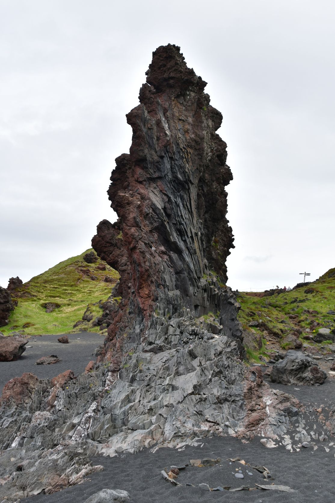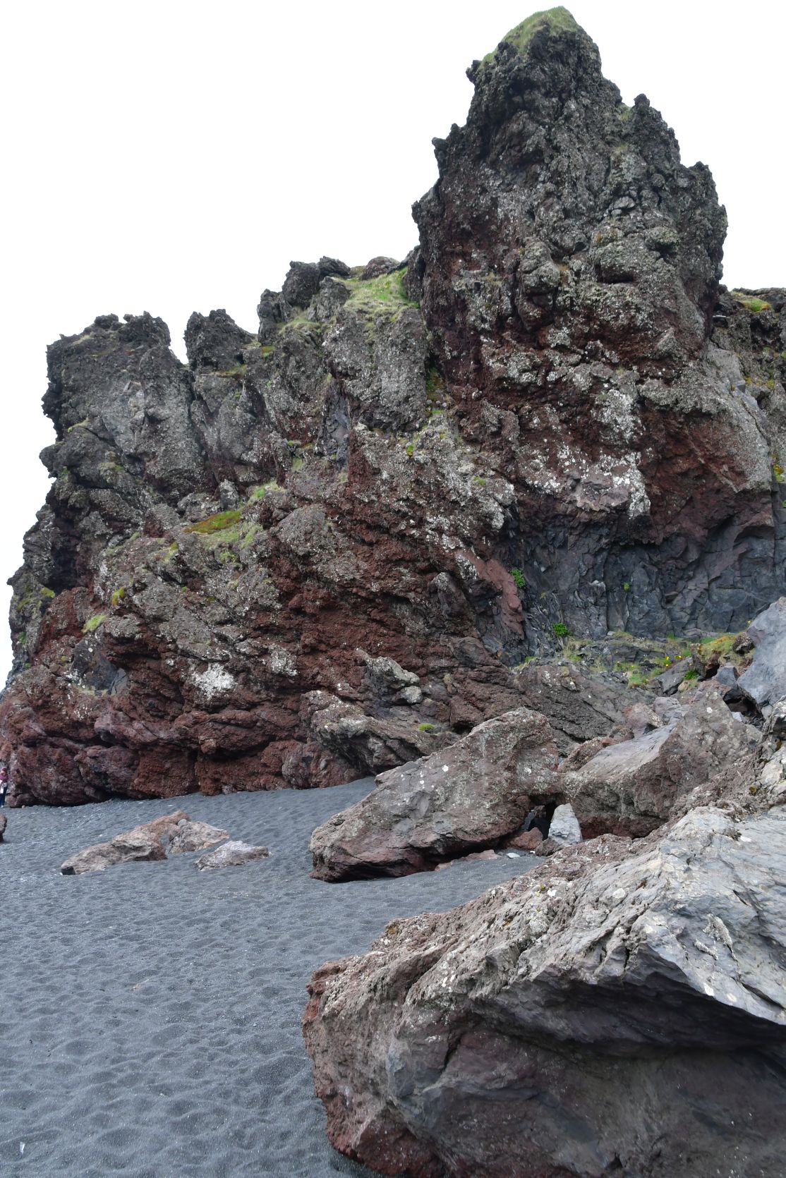 Djúpalónssandur, a black beach with lots of rusty metal pieces from a shipwreck lying around.