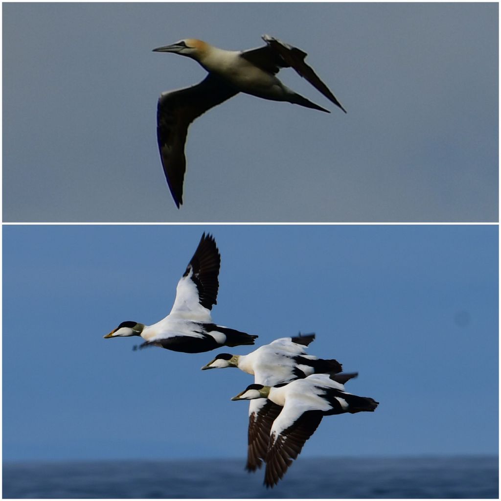 Ein paar Basstölpel und einige Eiderenten flogen vorbei.