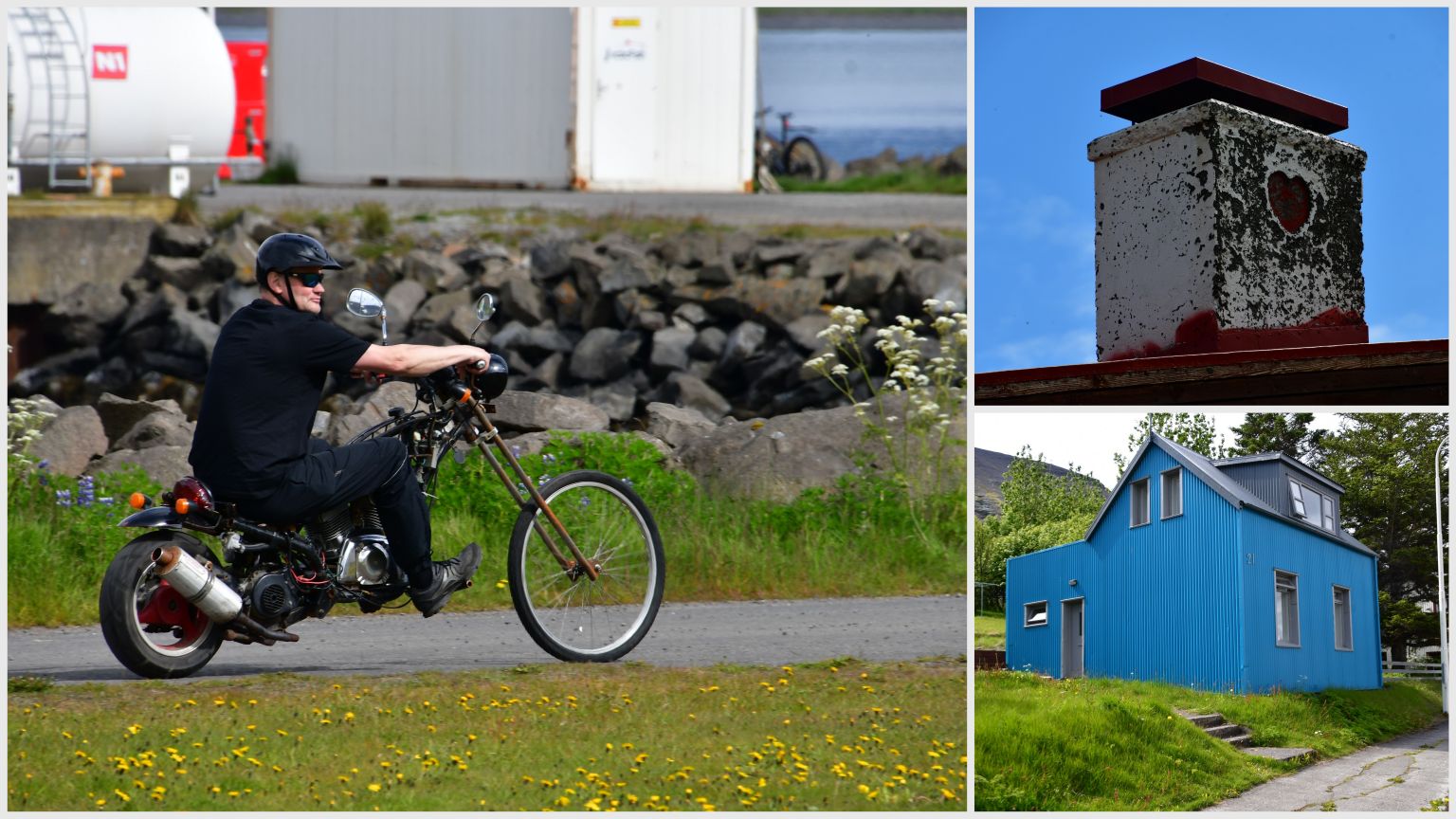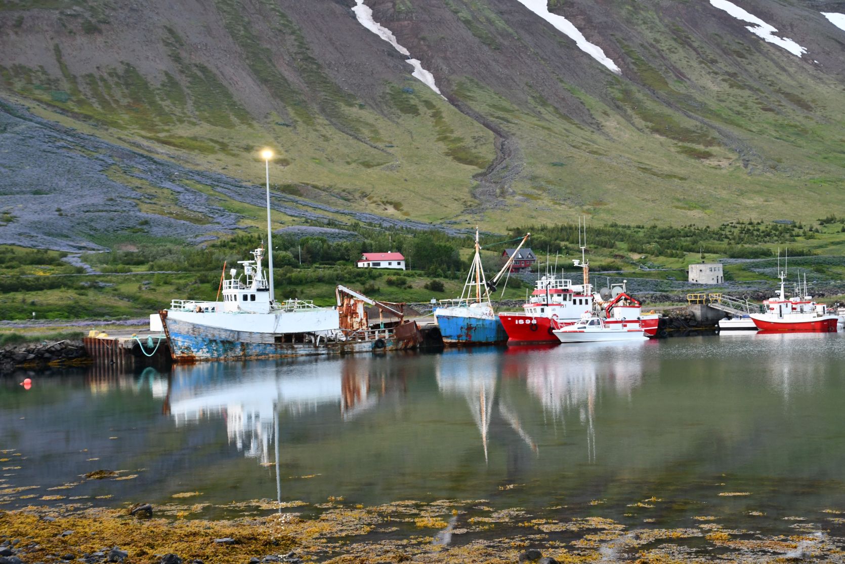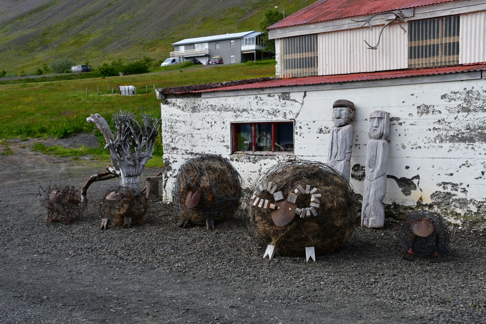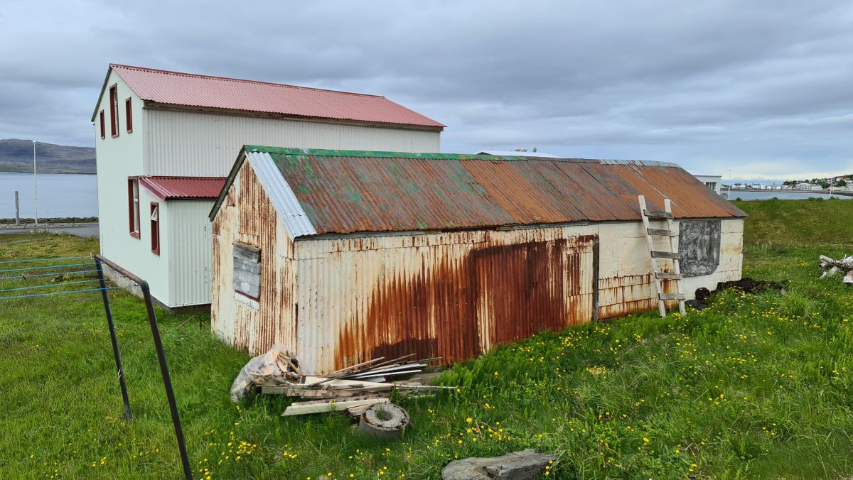 Last impressions of Patreksfjörður, before we drive over the pass to Tálknafjörður: e.g. a rusty house, a house where they used to dry fish underneath, bad roads or road works…