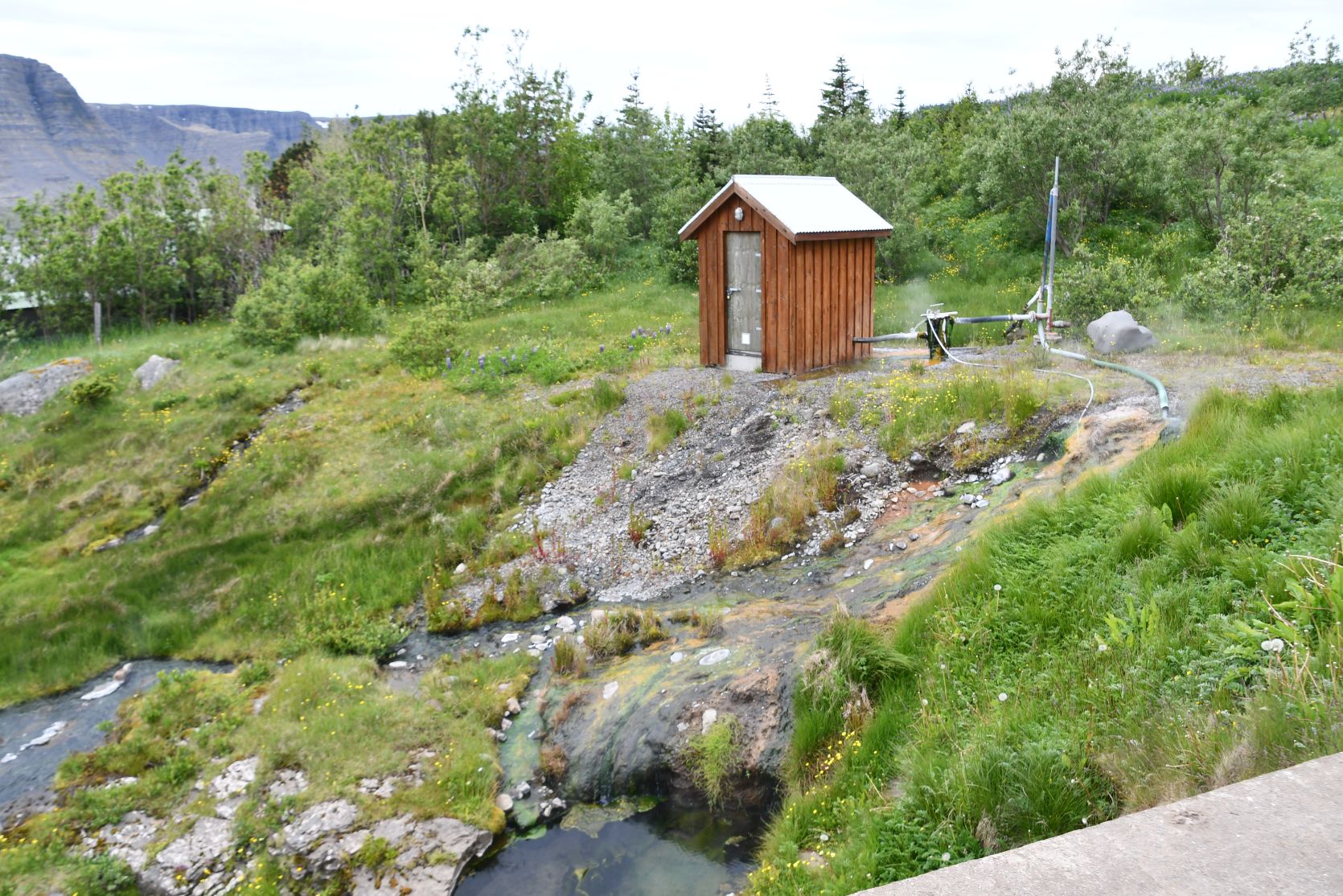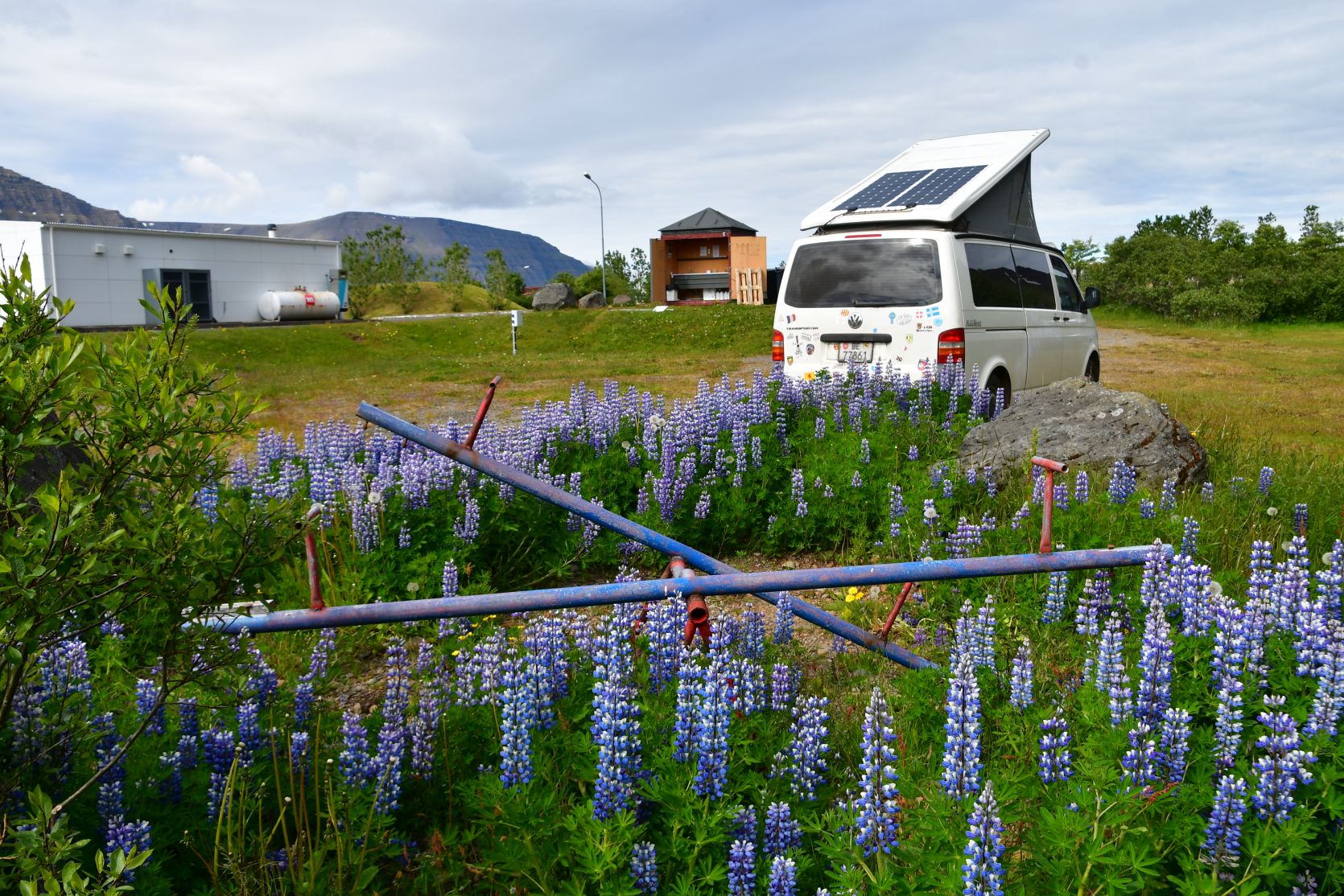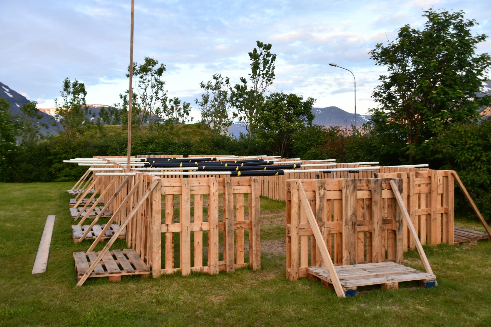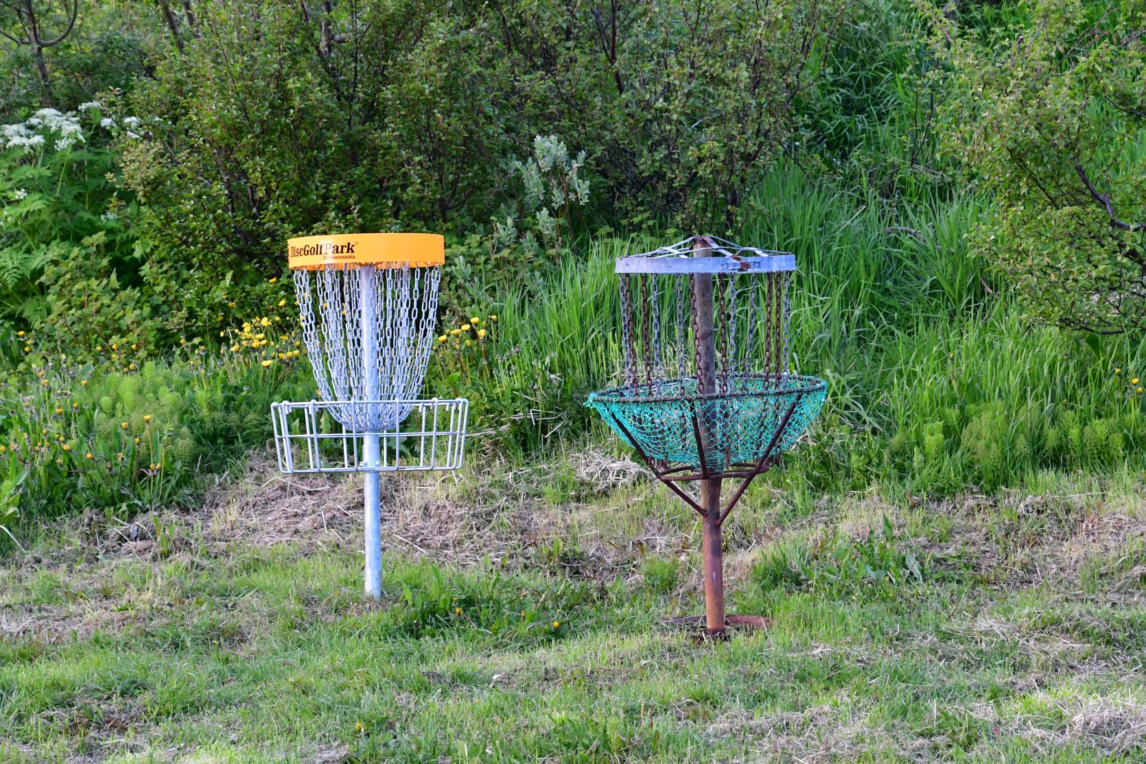 Zu den Lawinenverbauungen. An vielen Orten in Island kann man Frisbee Golf spielen!