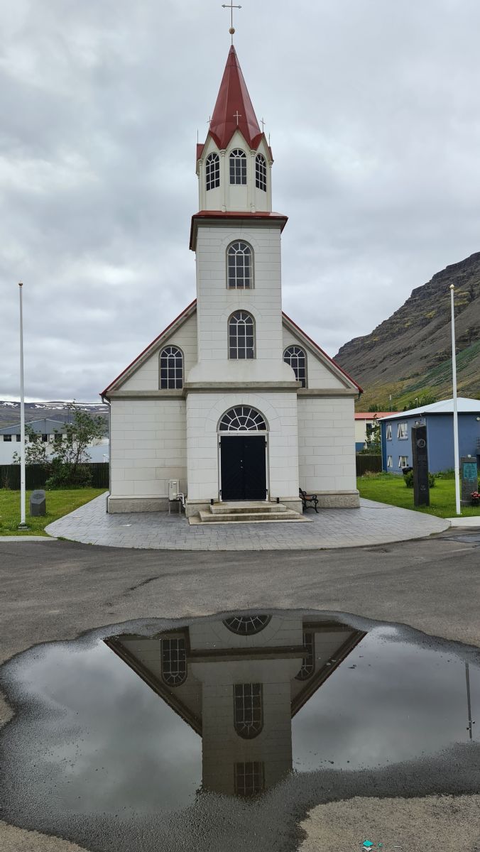 Two dogs, aggressive arctic terns, a church and a couple of houses awaited us.