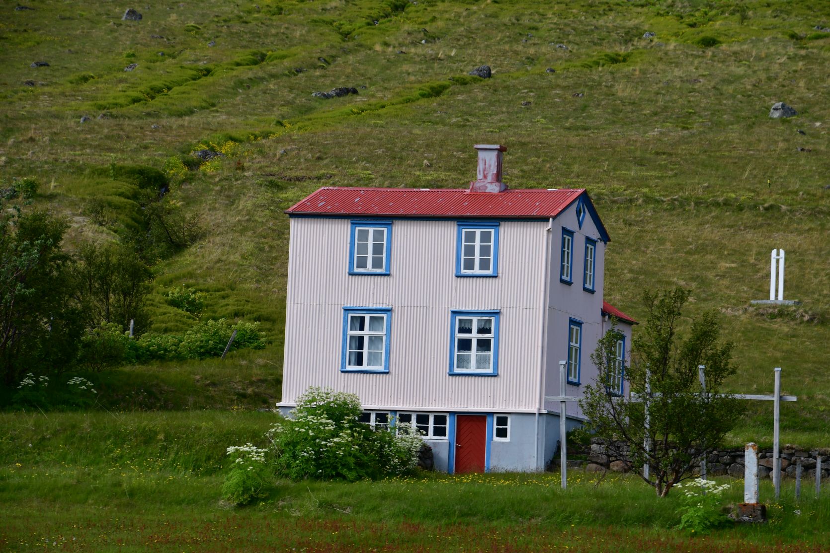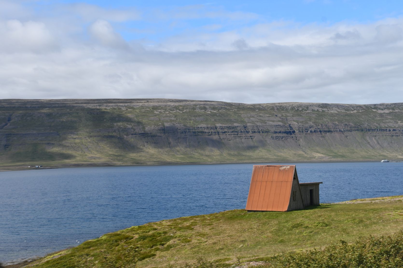 Further along the fjord. Just look at the colour of the house….