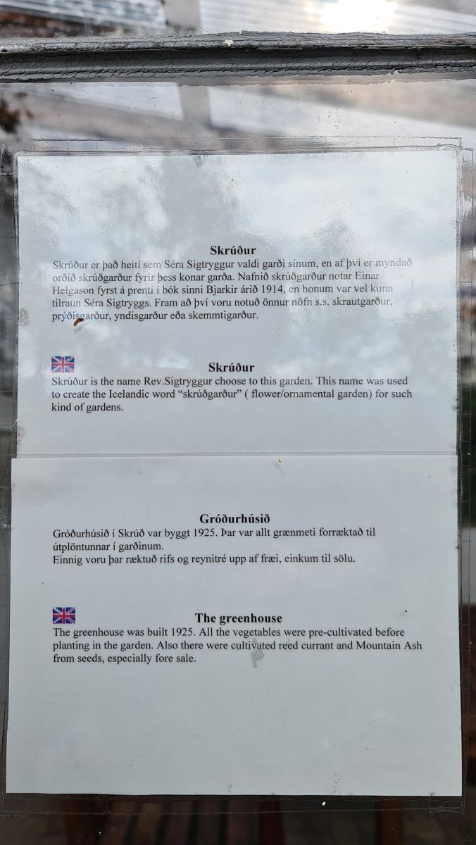 … and an old greenhouse with information about the garden.