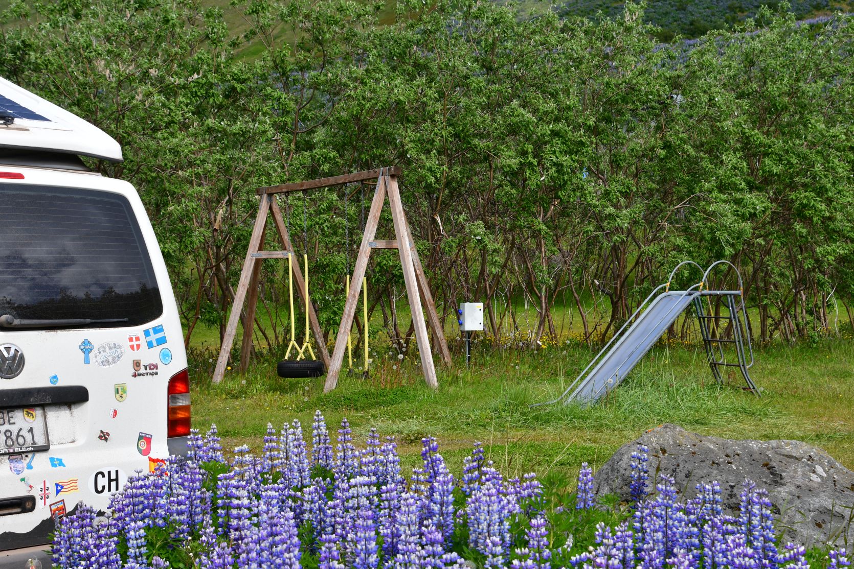 Neben Spielplatzgeräten übernachtet 🙂