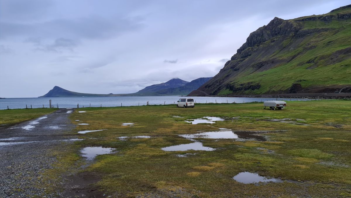 Der Campingplatz Urðartindur in Norðurfjörður. Es war sehr sehr windig und nass…