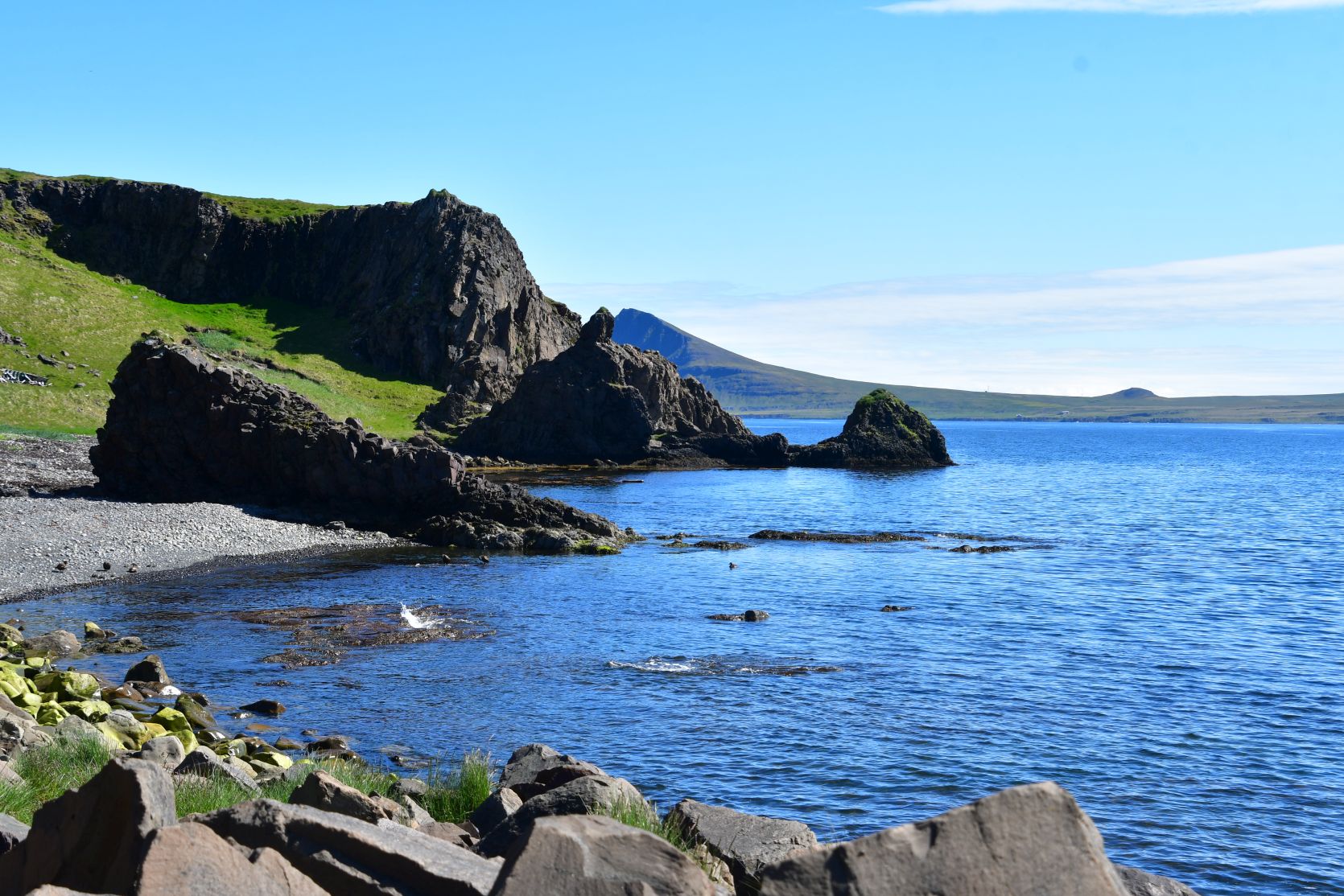 Wir wanderten von dort weiter der Küste entlang bis zur Krossneslaug.