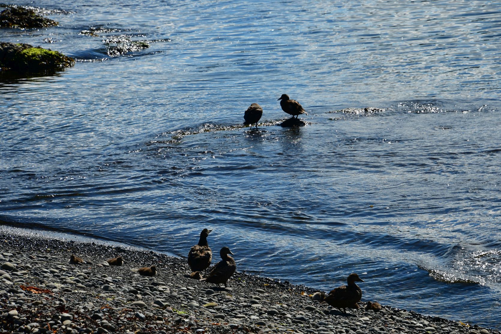 Einige wagten sogar, bis zu den Knien ins kalte Meer zu steigen ! Die Schafe schauten zu 😉