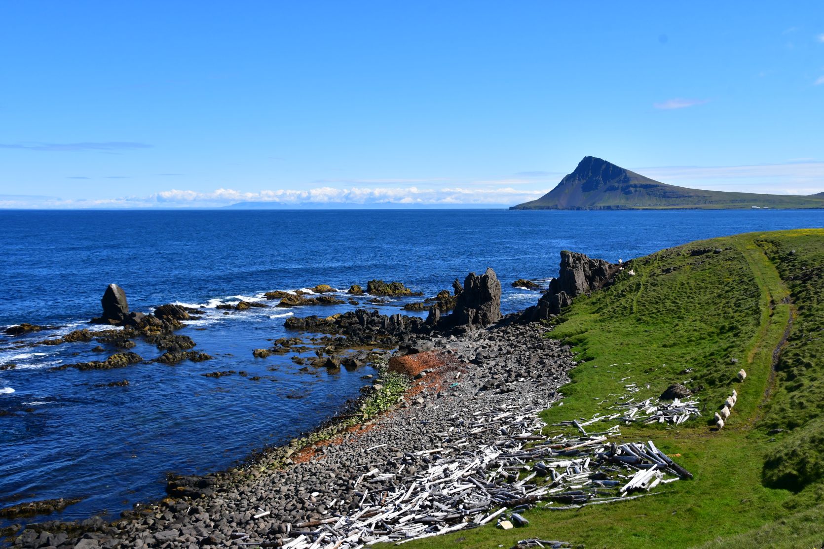 Some even dared to dip (up to their knees) into the sea ! The sheep were just watching 😉