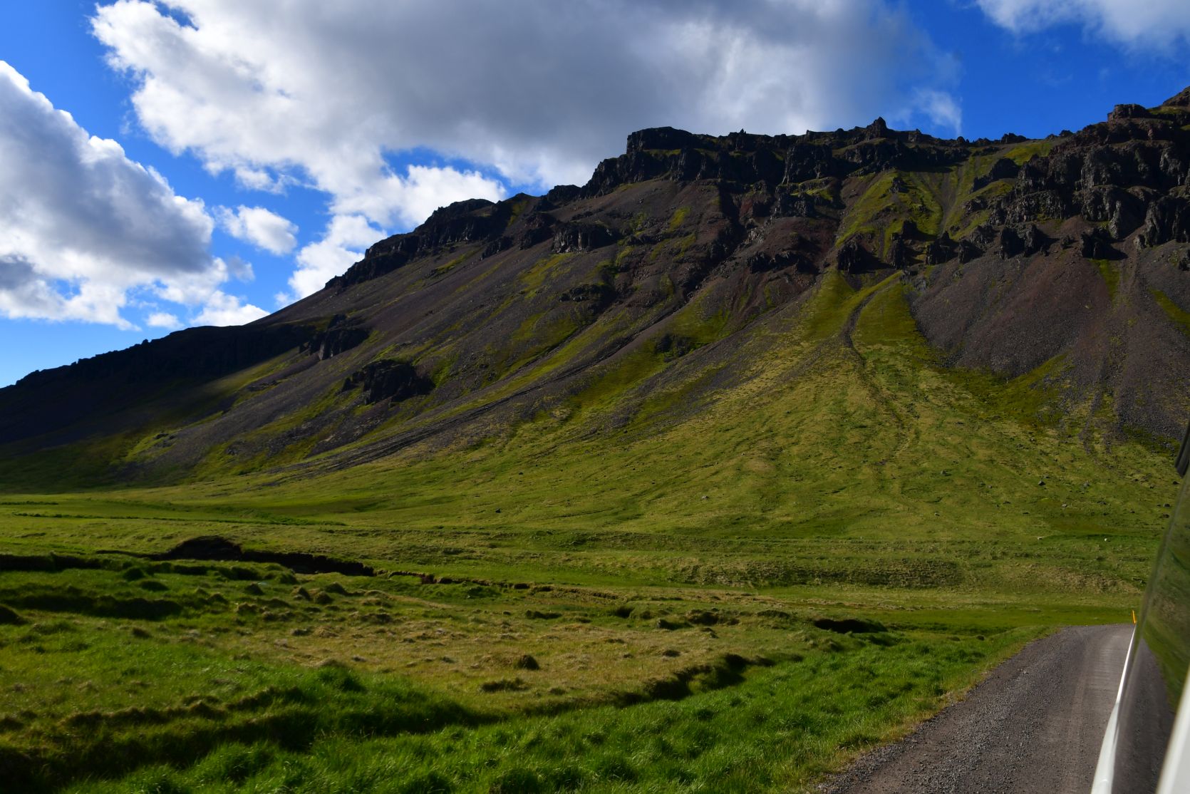 Am nächsten Tag war das Wetter viel besser ! Manchmal wirkt unser Büssli winzig, im Vergleich zu den isländischen „Dinosauriern“ 😉