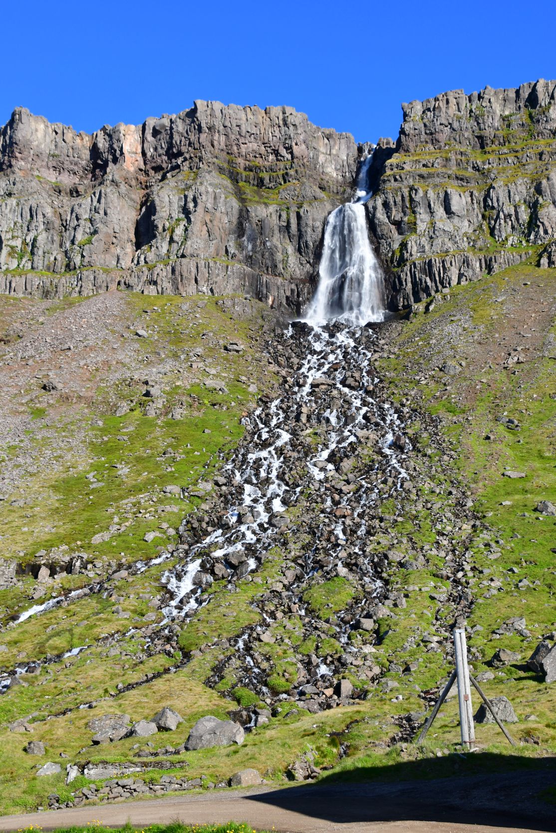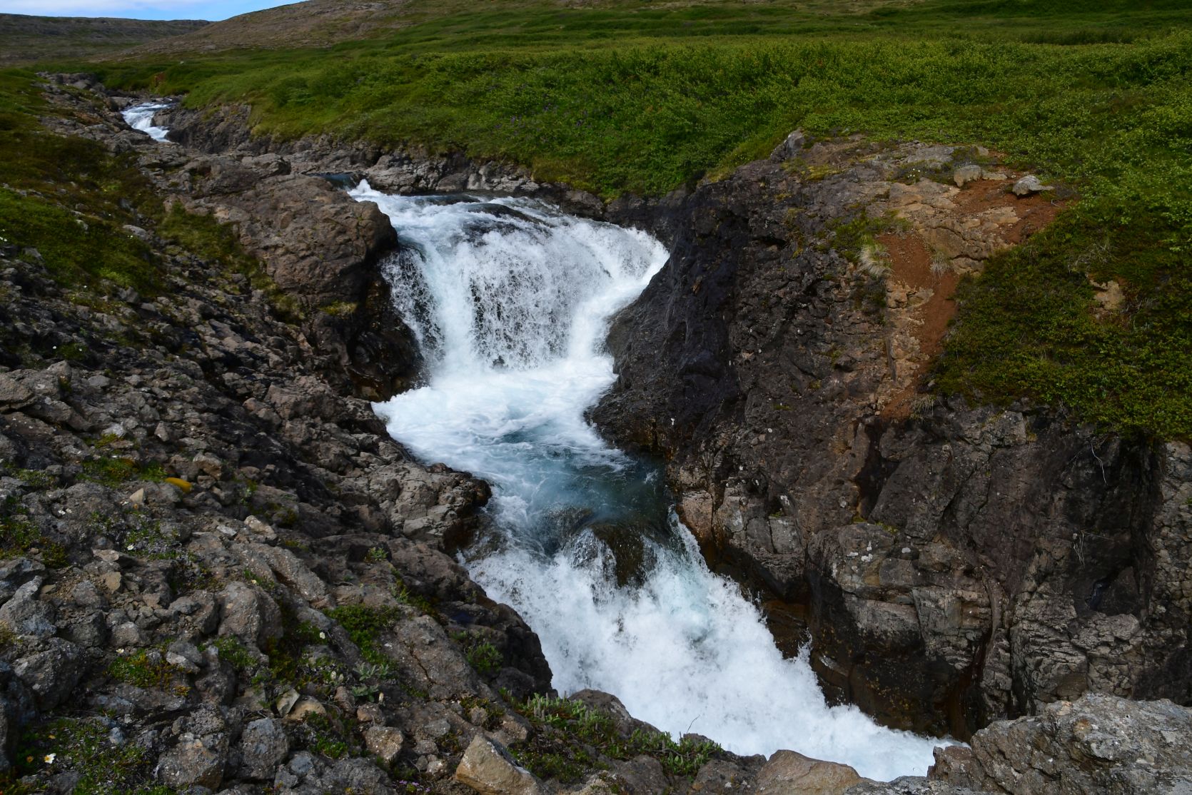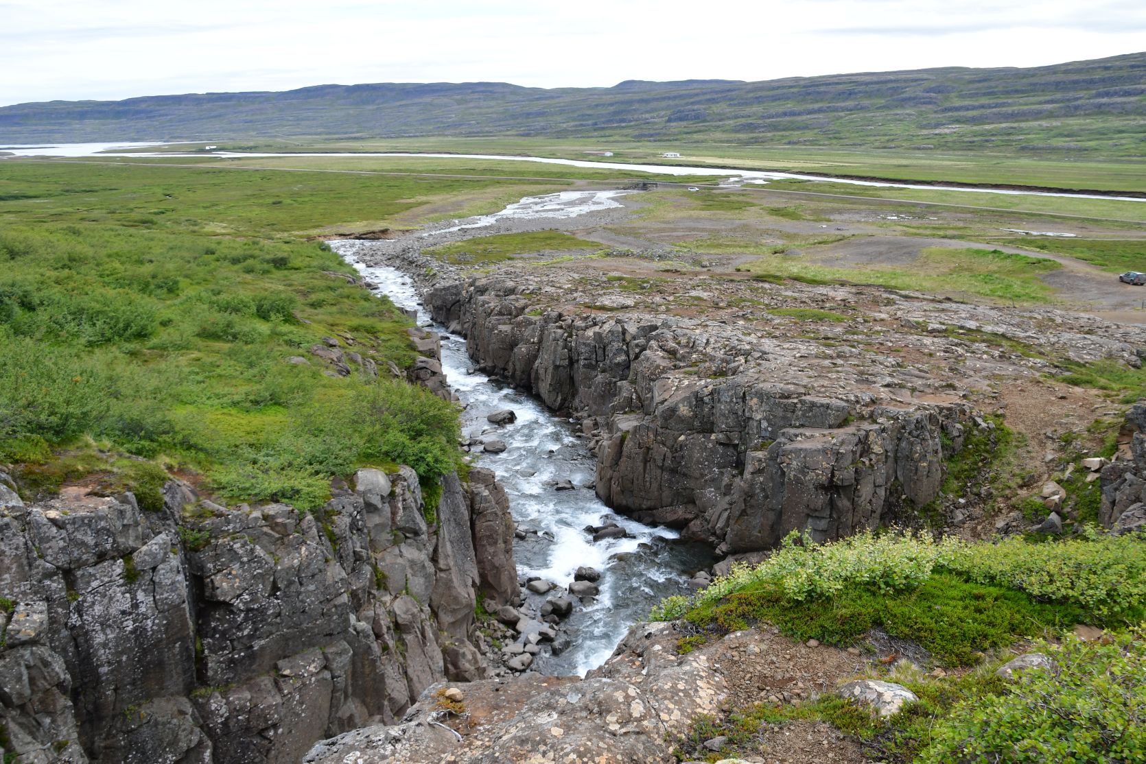 Ein Wanderweg, den wir am Vortag gesehen hatten. Der Wasserfall heisst Goðafoss, wie sein berühmter Bruder!