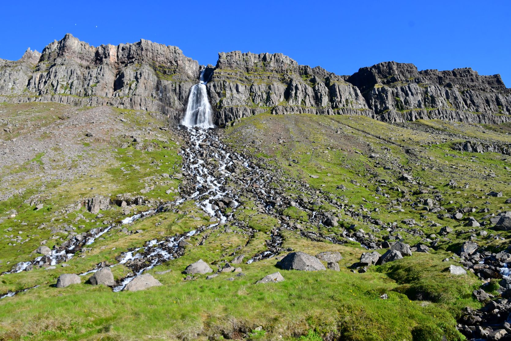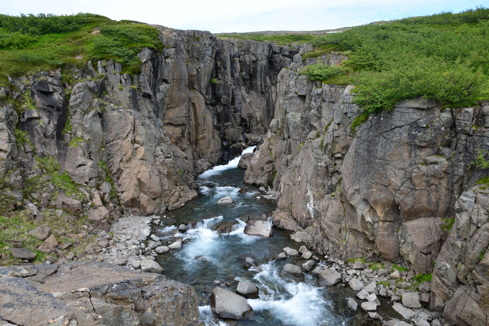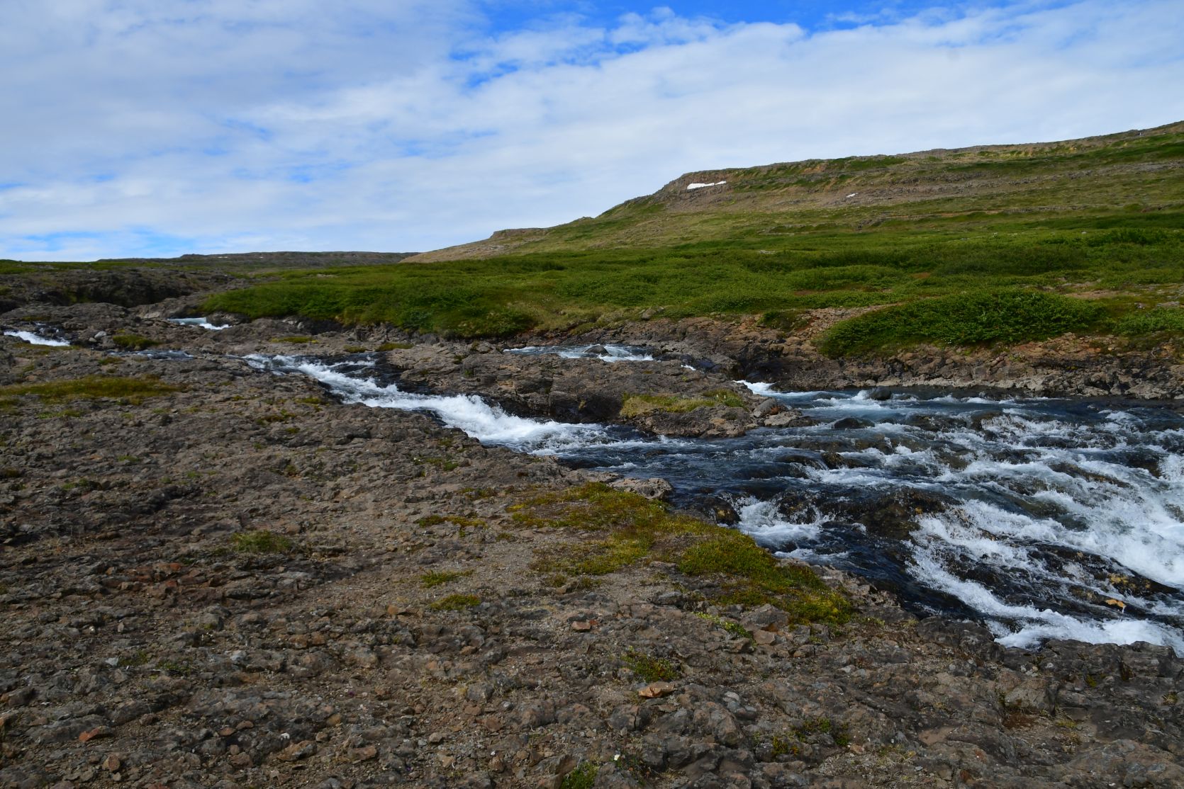 Ein Wanderweg, den wir am Vortag gesehen hatten. Der Wasserfall heisst Goðafoss, wie sein berühmter Bruder!