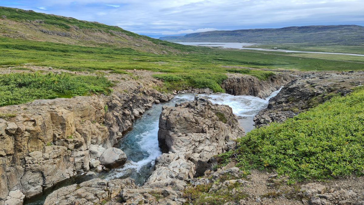 Going for a walk that we noticed yesterday. The waterfall is called Goðafoss, like its famous brother!