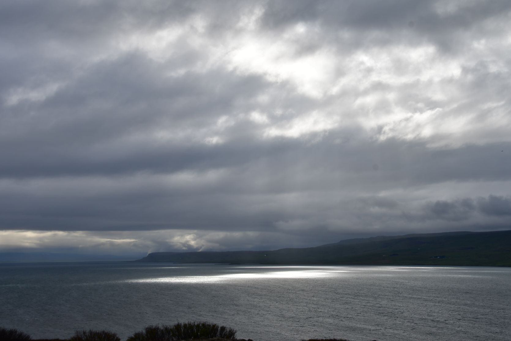 Wir sahen den Regen auf der anderen Seite des Fjords… Es sah bedrohlich aus.