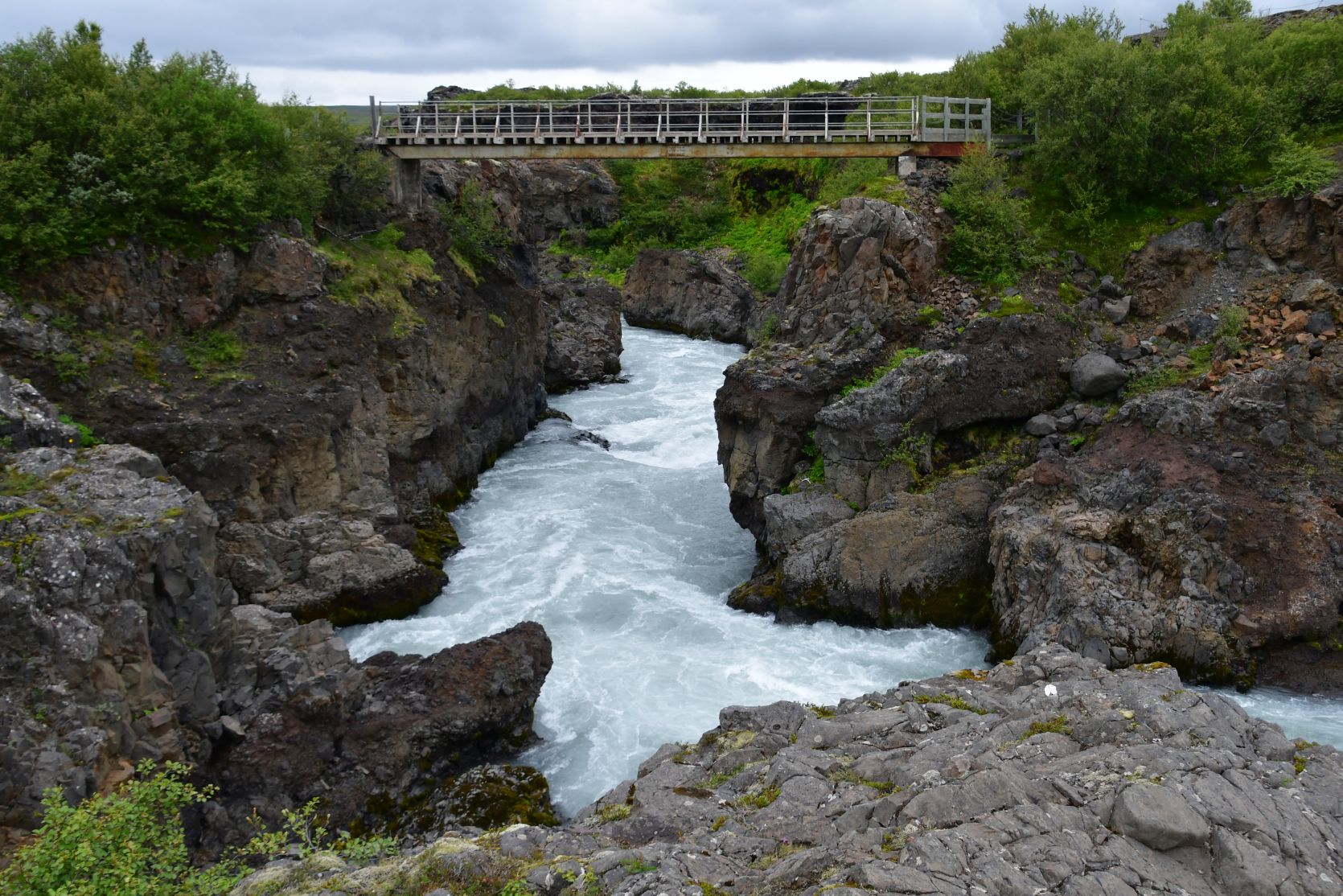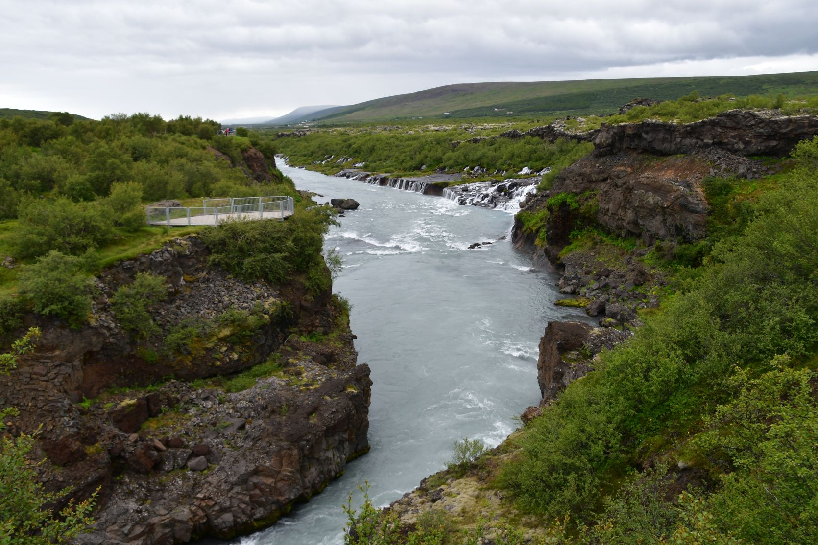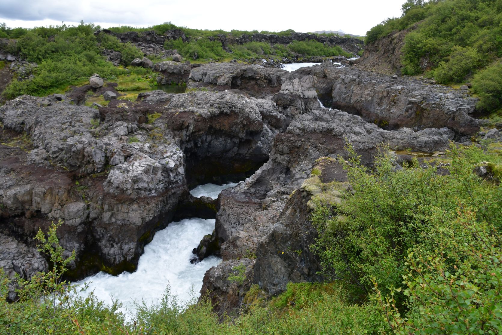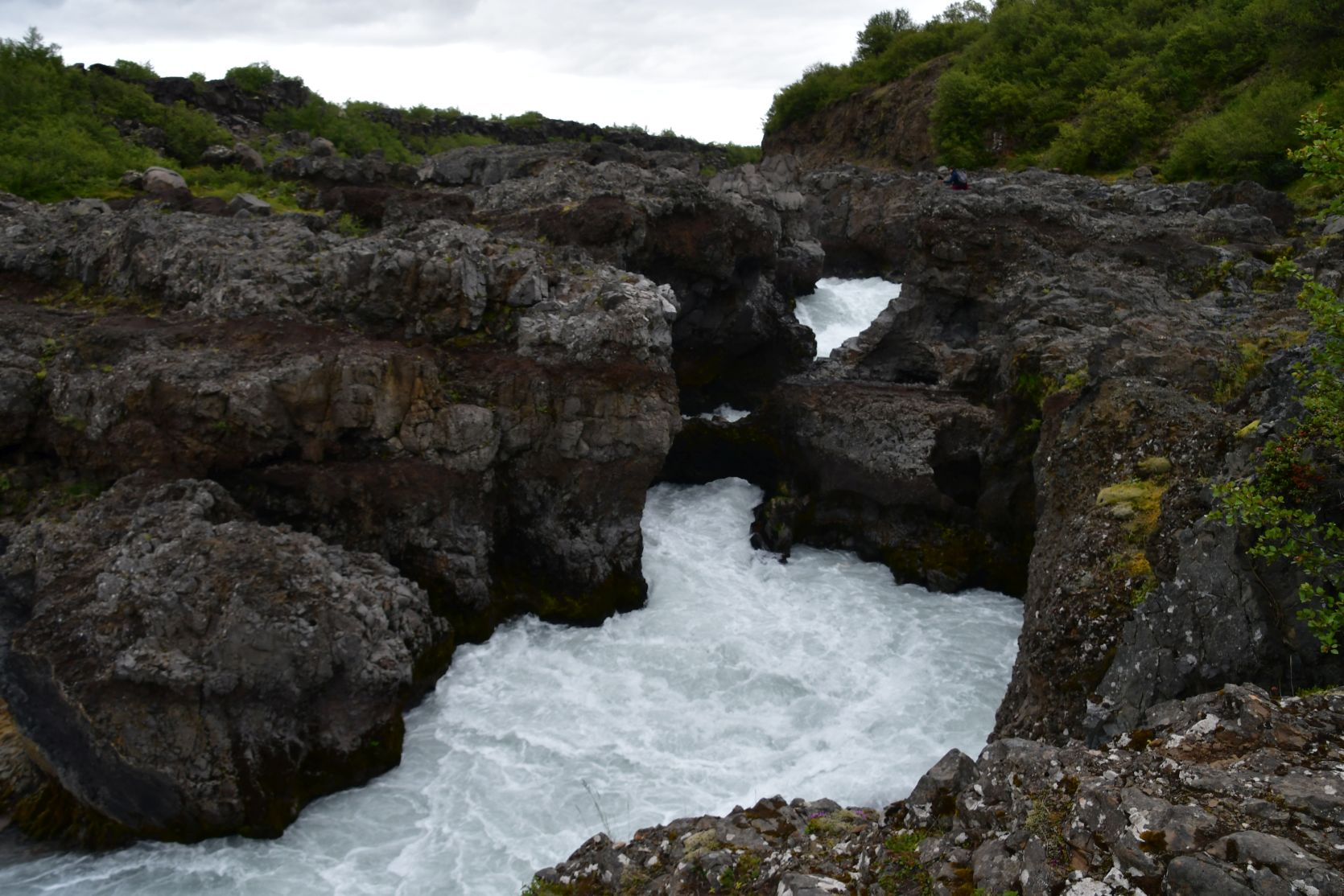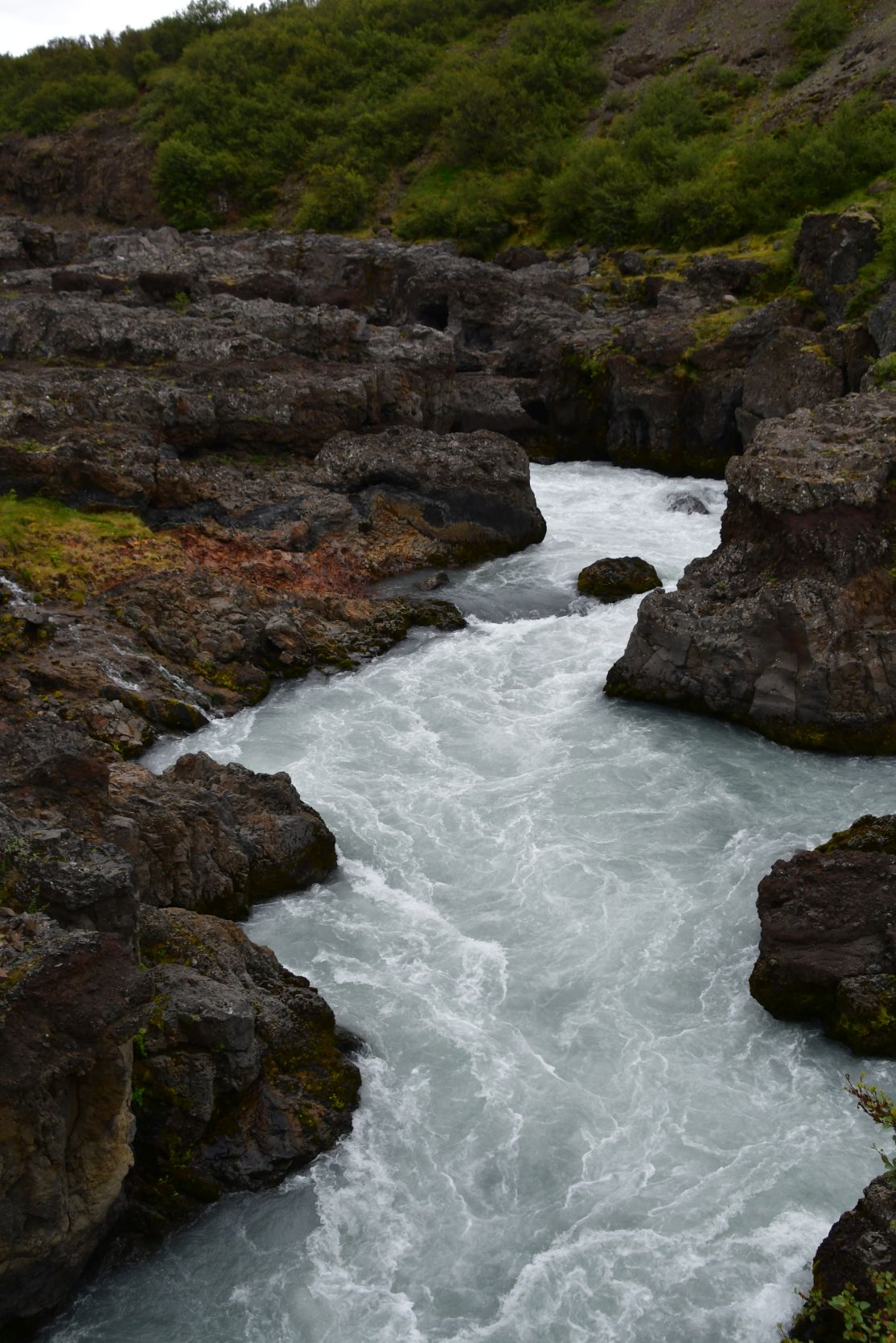 Just above the Hraunfossar is another waterfall, the Barnafoss.