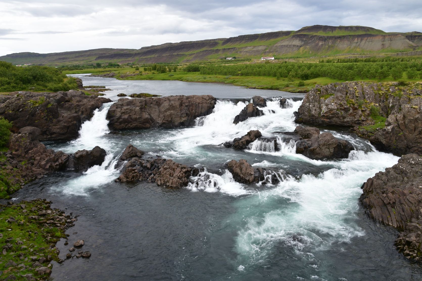 Der Fluss Norðura ist einer der bedeutendsten Lachsflüsse Islands. Die Lachse benutzten aber nicht die Fischtreppe, sondern versuchten, den Wasserfall hochzuspringen !