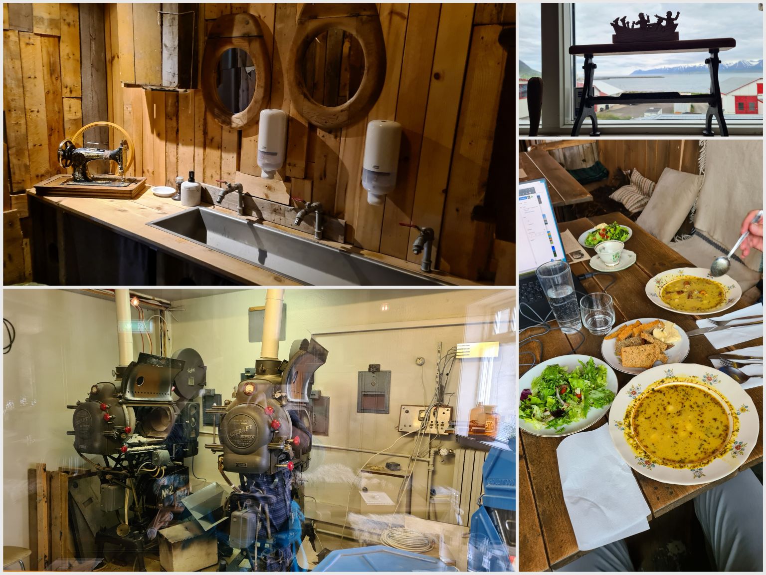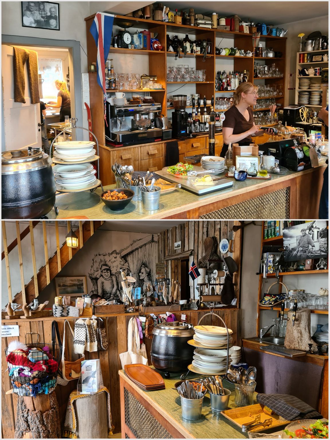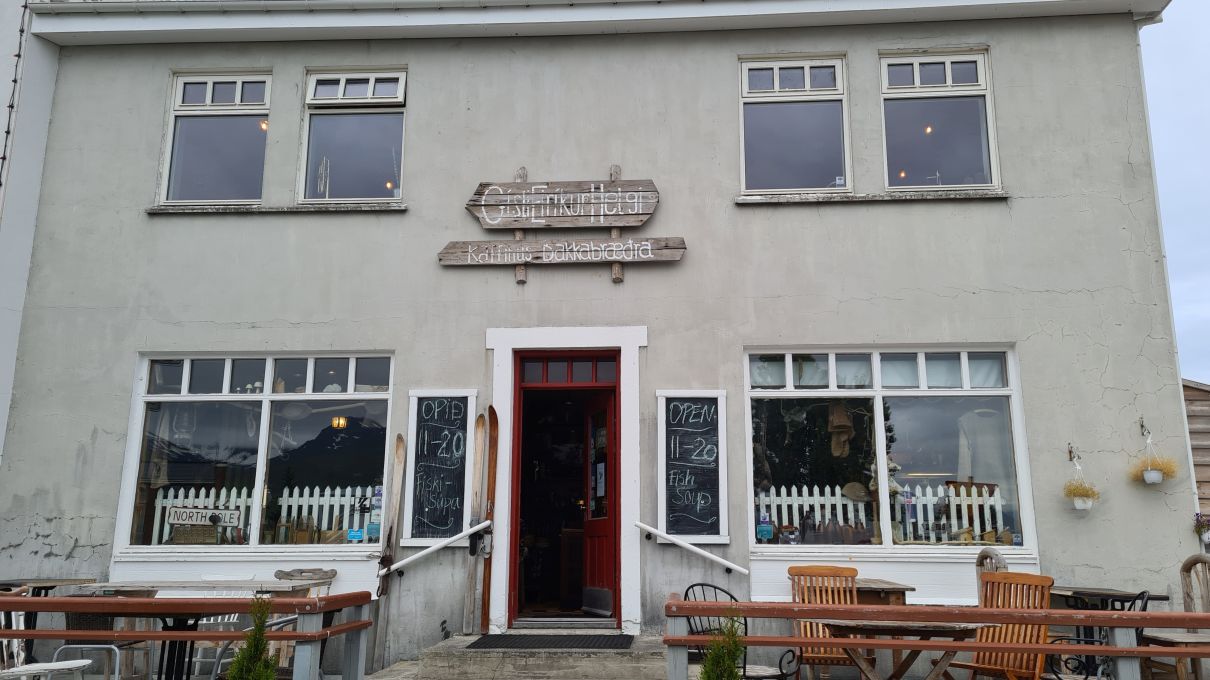 Wir verbrachten dann viel Zeit im Kaffihûs Bakkabrædra, oder „Gísli, Eiríkur, Helgi – kaffihús“. Die Fischsuppe mit Salat und selbstgebackenem Brot (alles mit Nachschlag !) sind wunderbar, und die Kuchen ebenso. Das Interieur ist sehr speziell. Man kann dort Stunden verbringen und sich wohlfühlen.