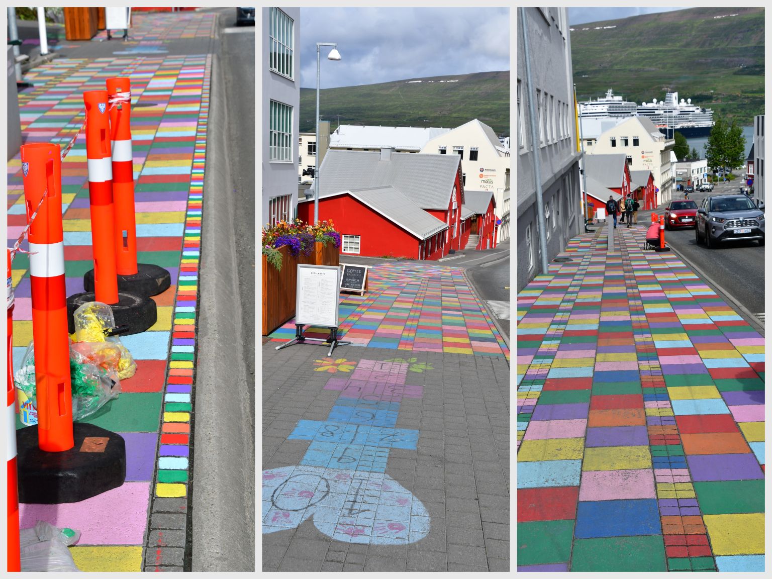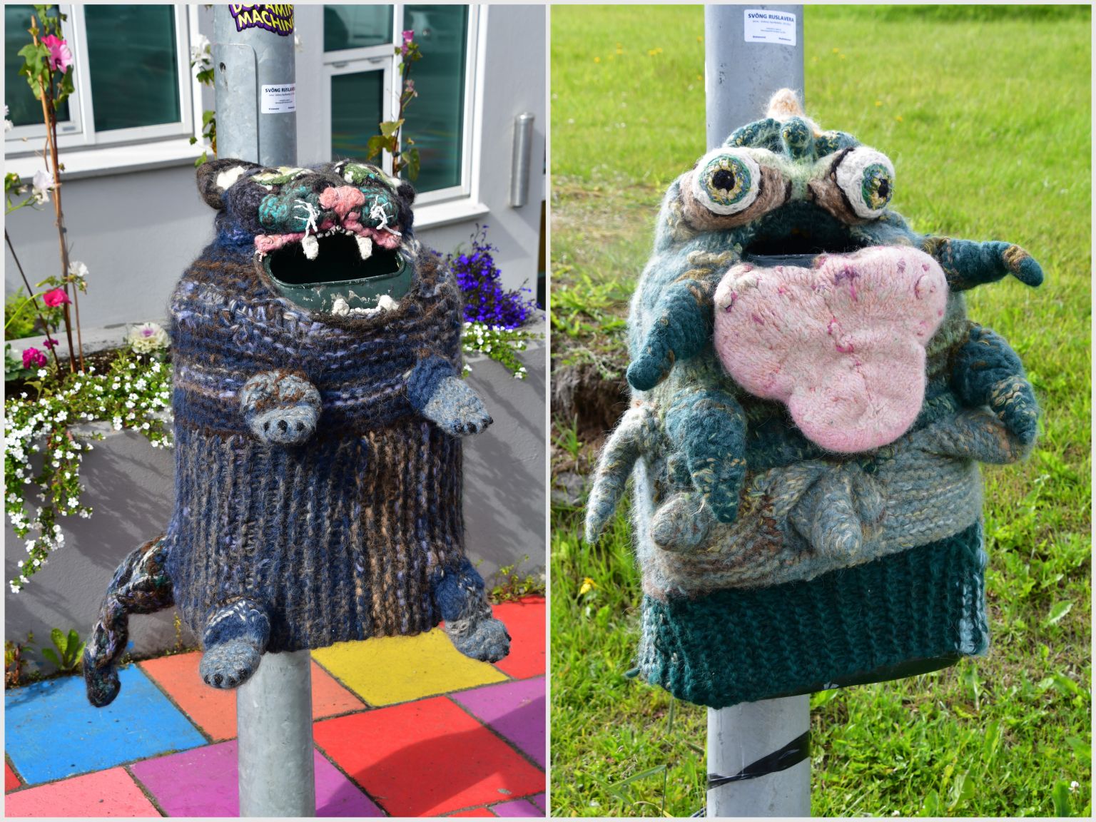 Cool „coats“ for rubbish bins, and colourful pavements !