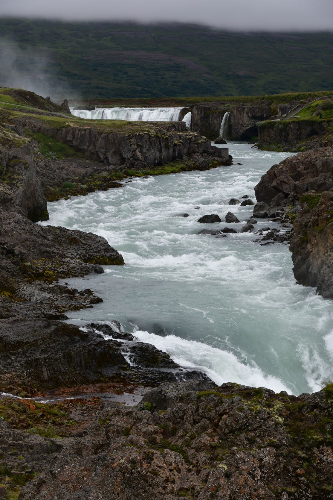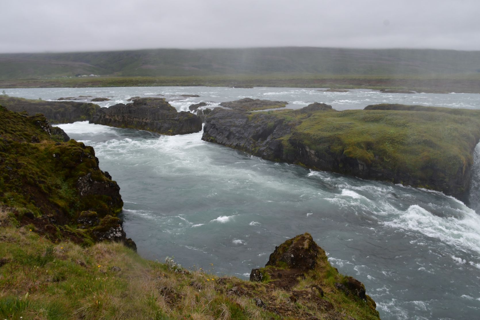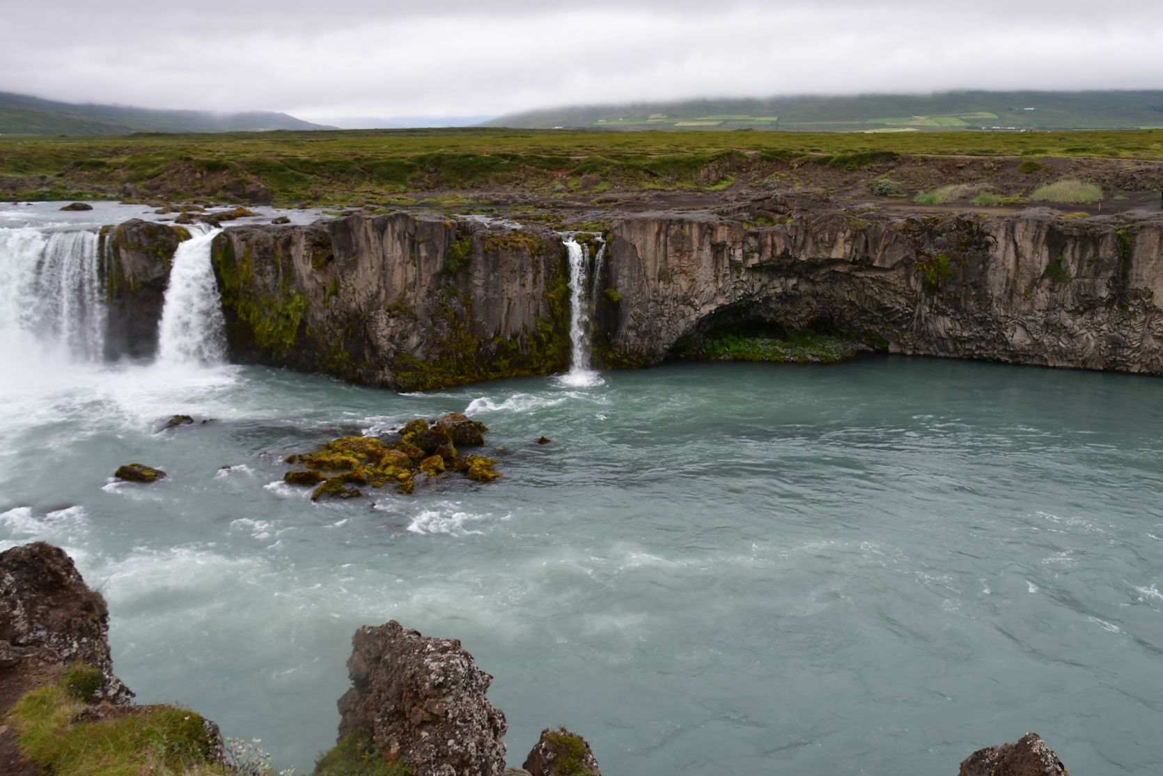 Stopover at Goðafoss. We’ve seen it in gorgeous weather, and then it looks even better!