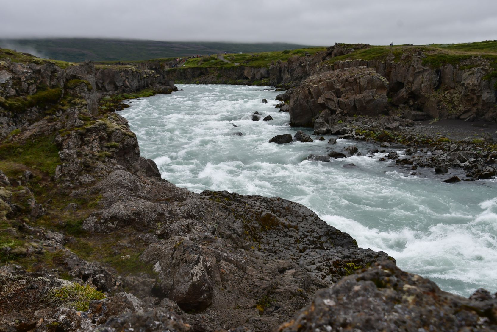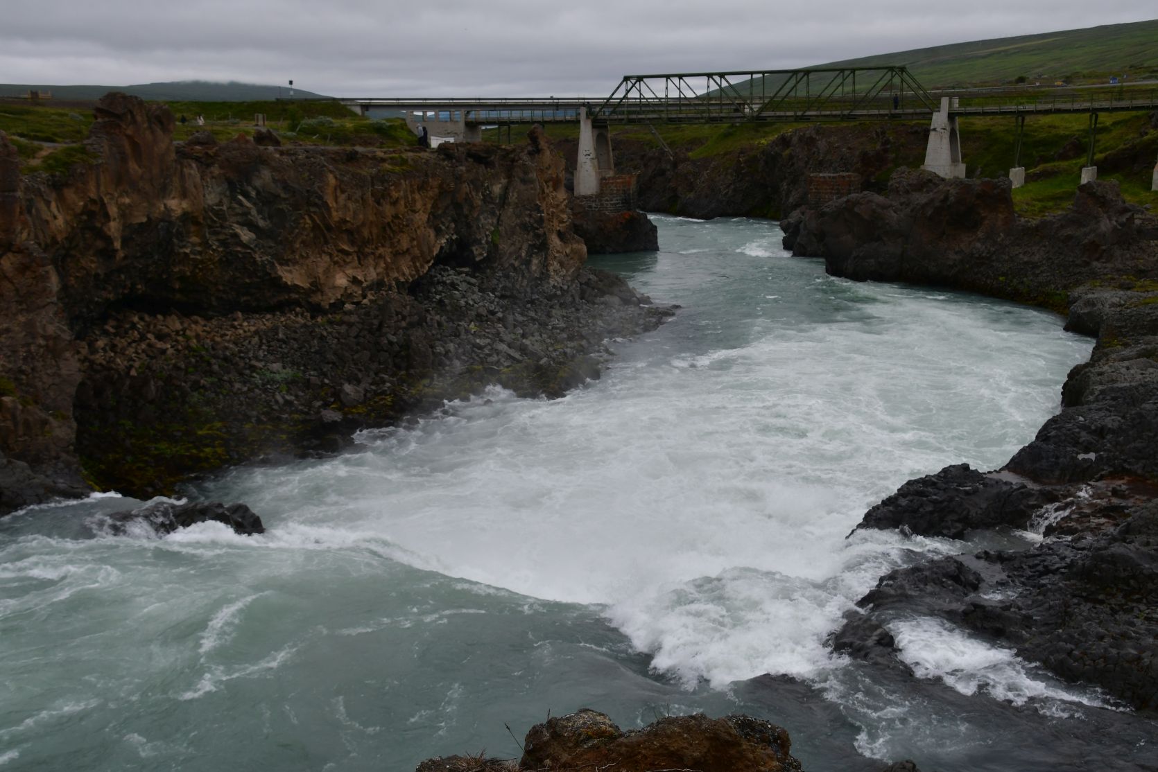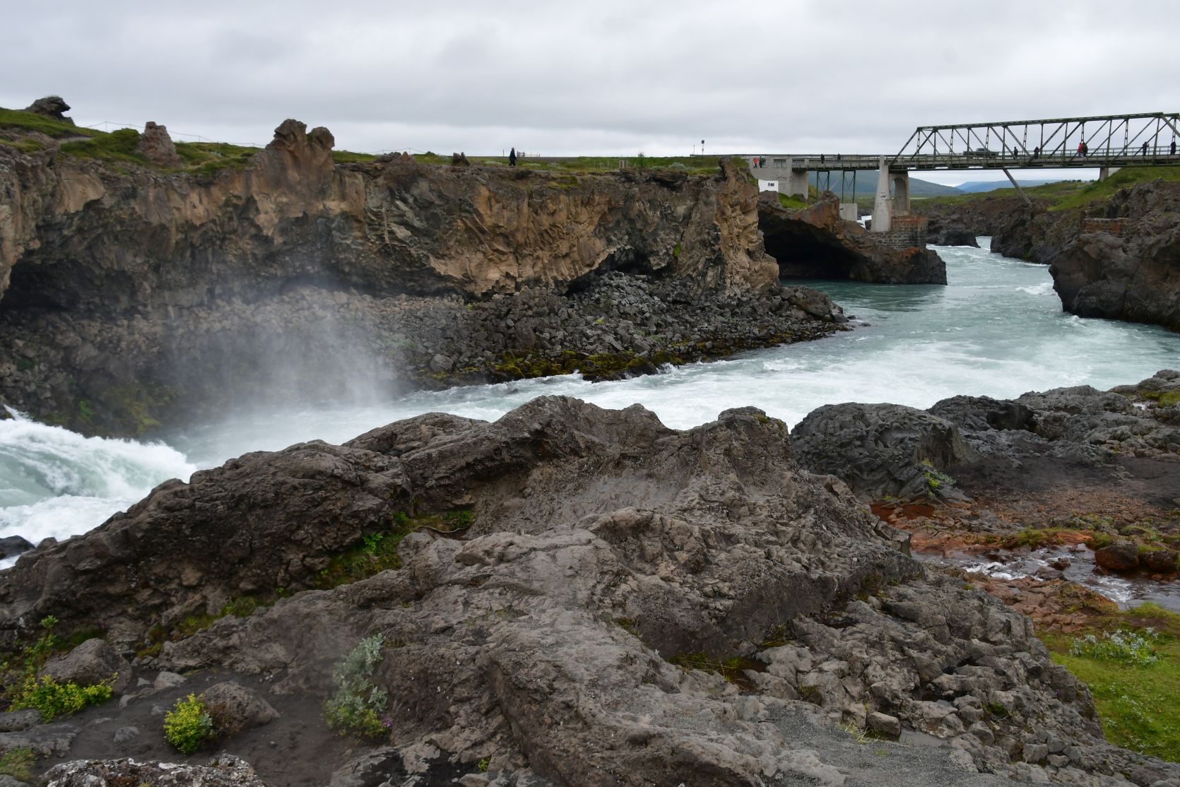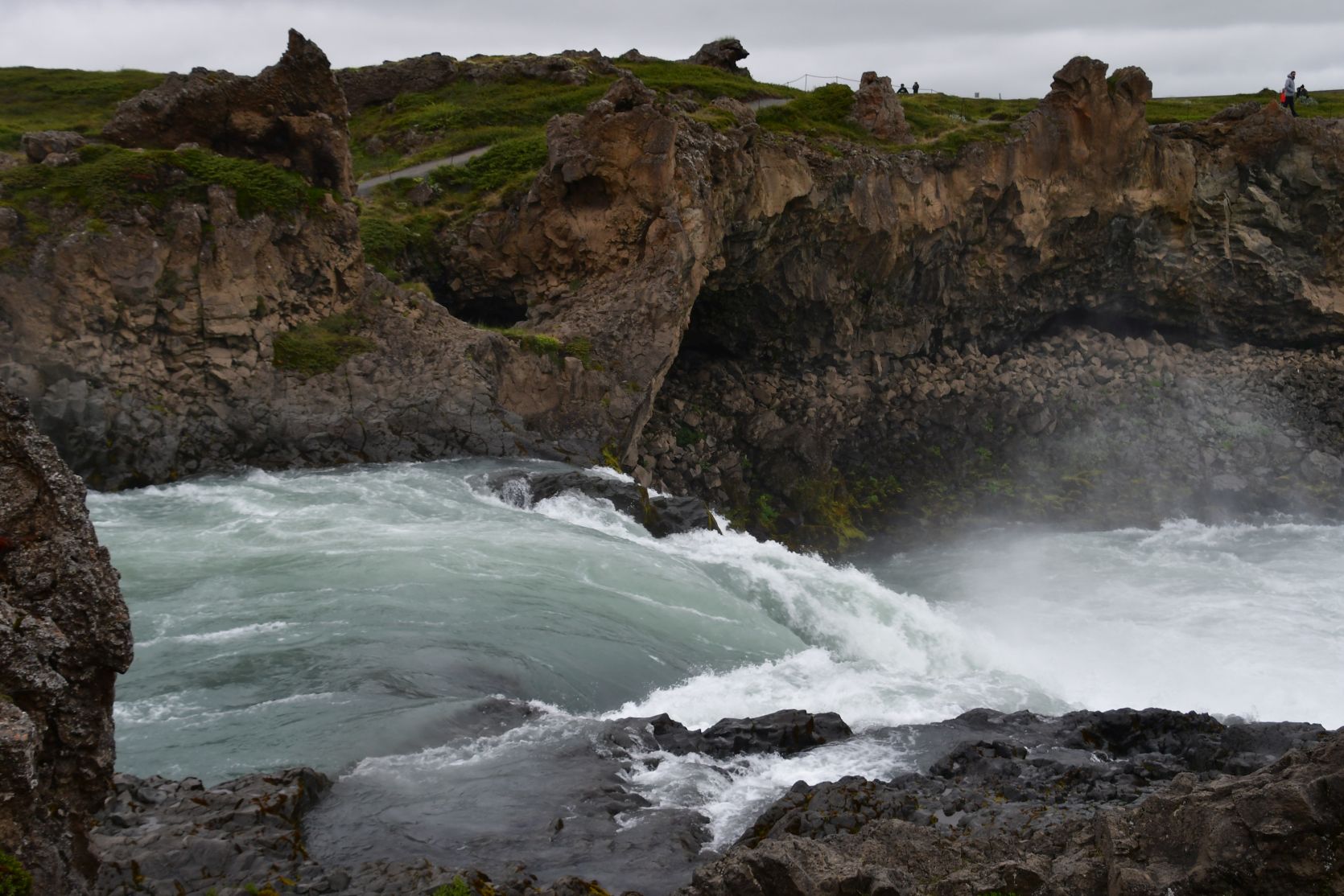 Stopover at Goðafoss. We’ve seen it in gorgeous weather, and then it looks even better!