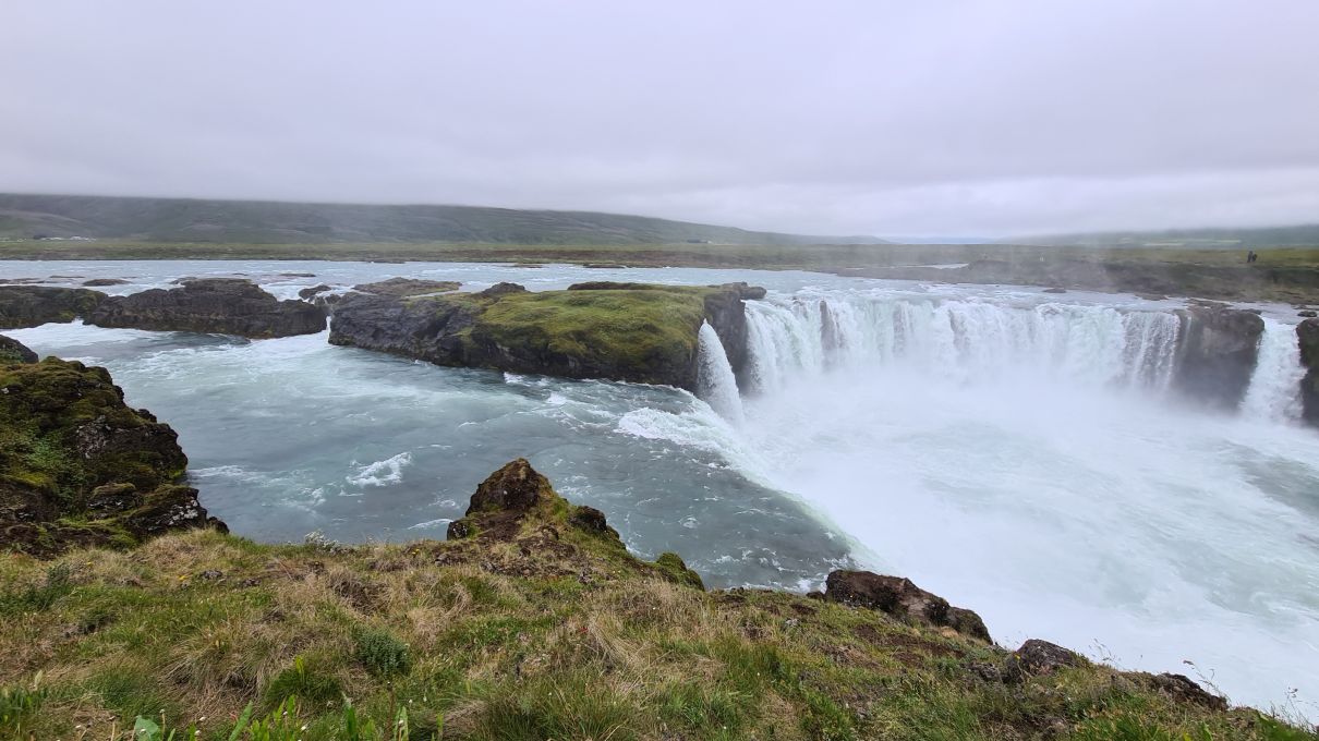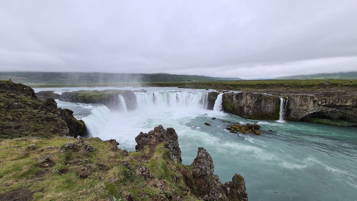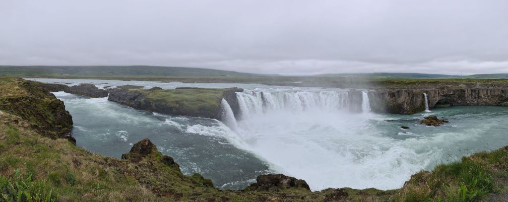 Zwischenhalt beim Goðafoss. Wir haben ihn schon bei wunderbarem Wetter gesehen, und dann ist er noch viiiiiel schöner!