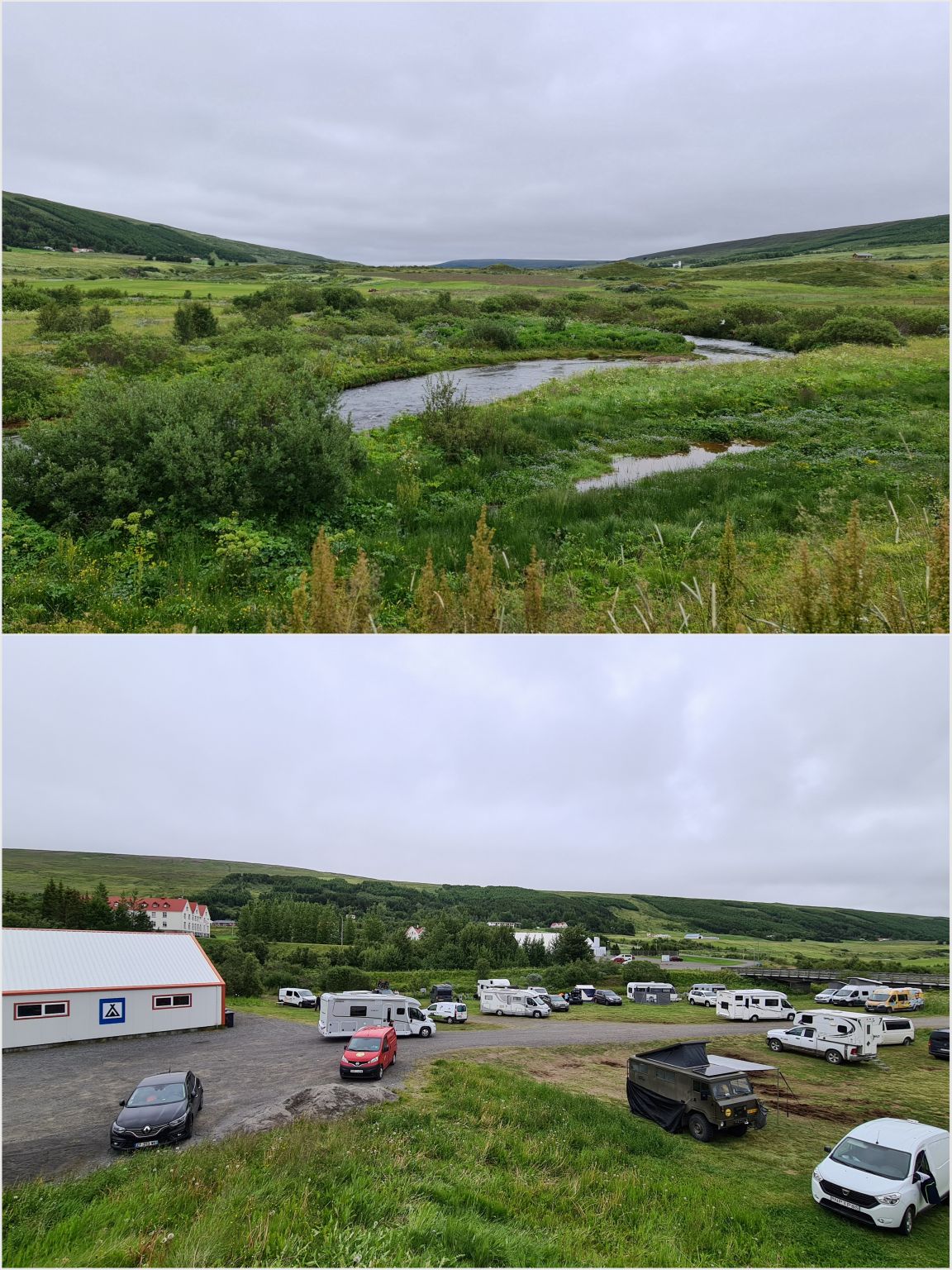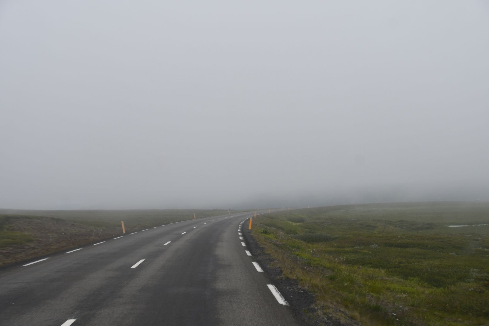 Driving on to the campsite at Laugavöllur. Luckily we found it, despite the fog 😉