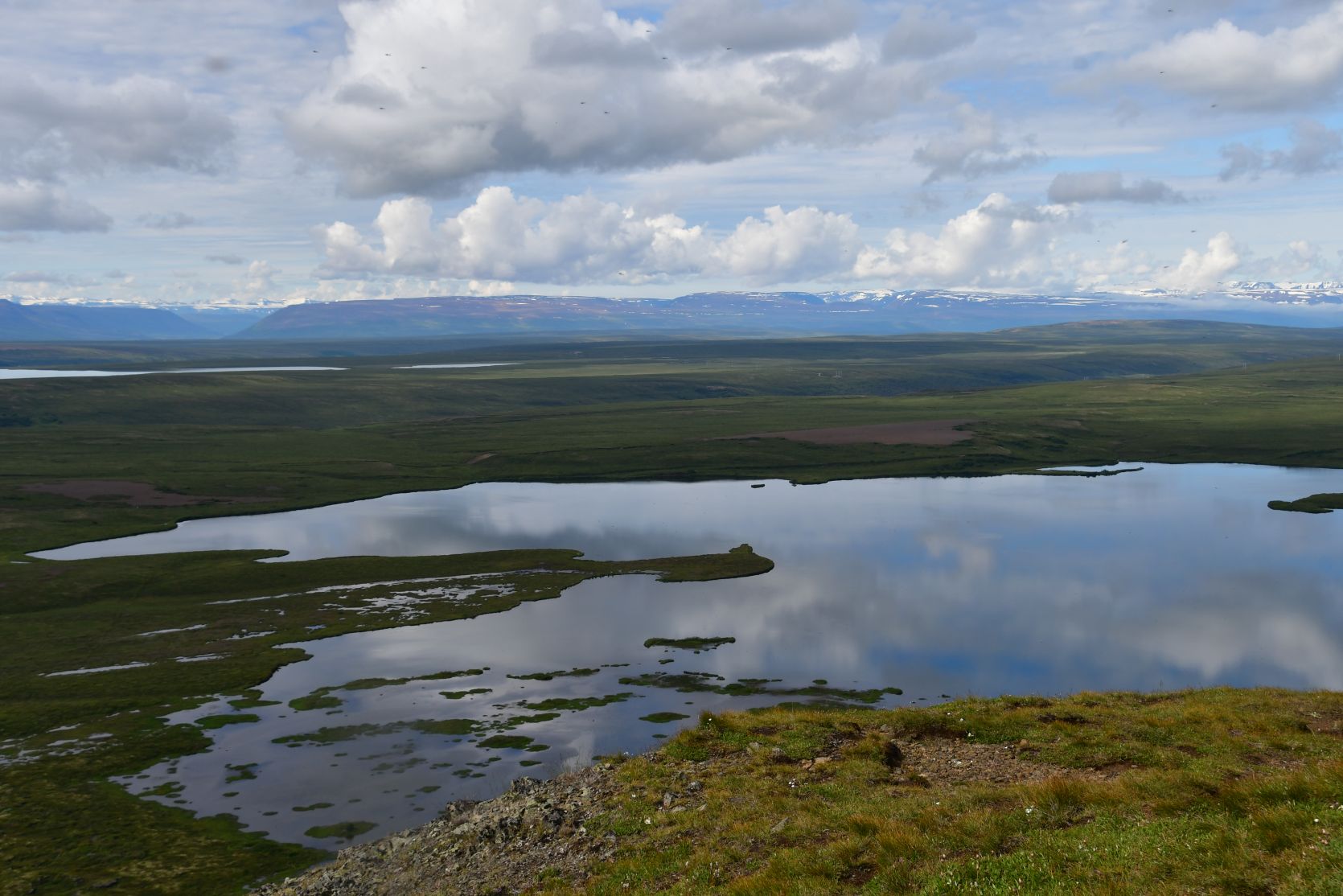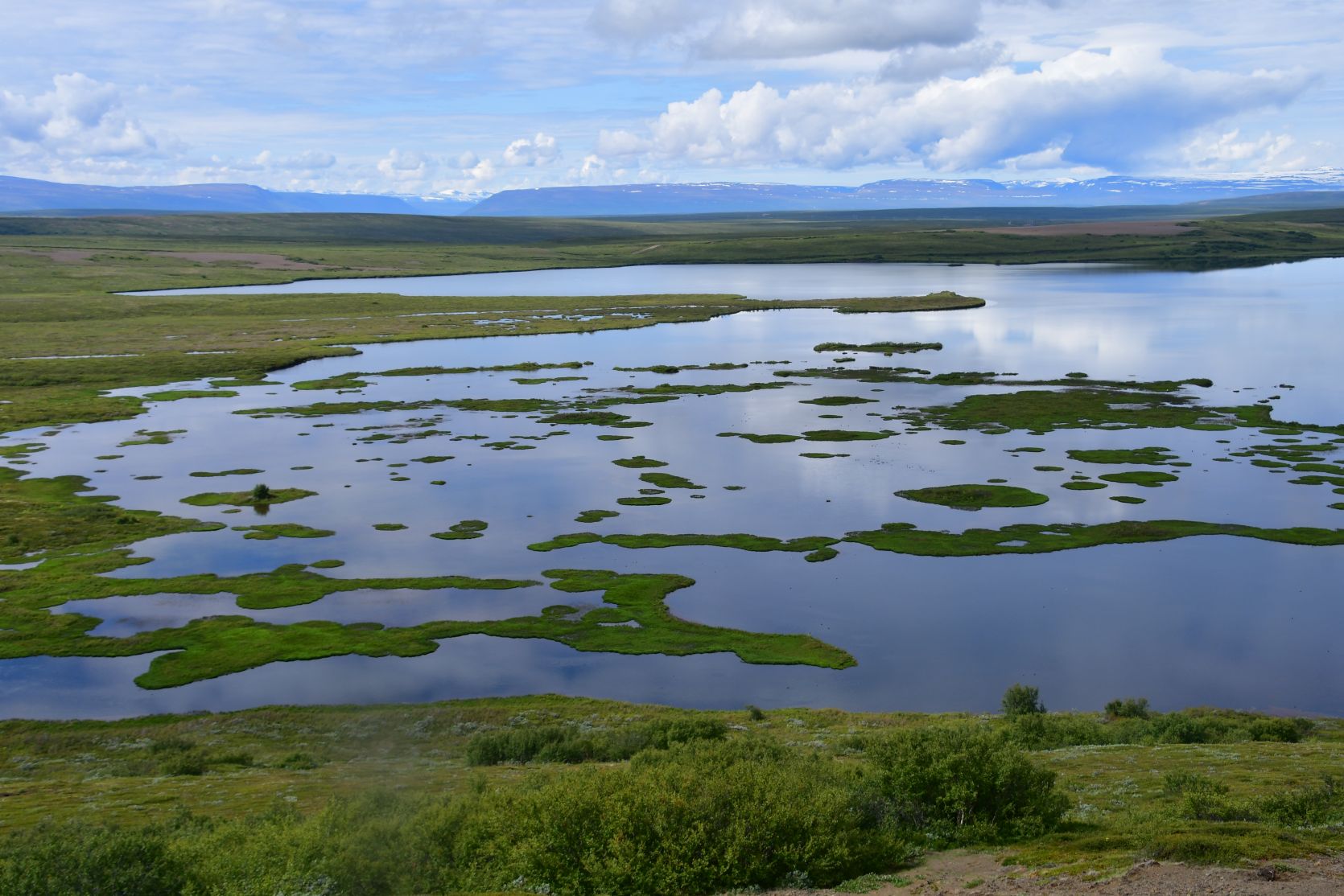 Mývatn means „lake of midges“, and it’s a very shallow lake (2.5 to 4.5 metres). There are subterranean hot springs feeding the lake, so it never freezes up completely in winter. There are many different insects, ducks and other birds.
