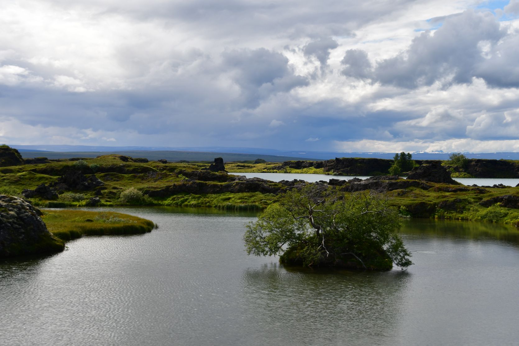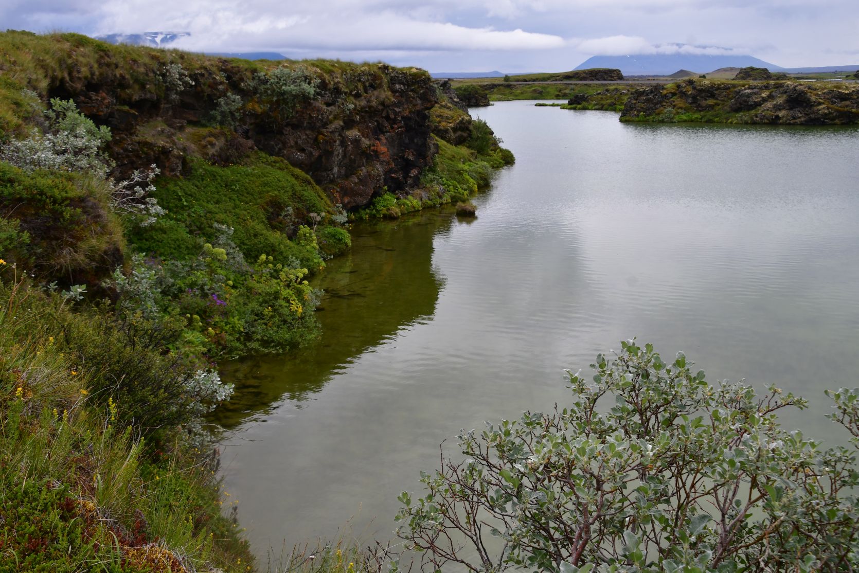 Mývatn bedeutet „Mückensee“, und es ist ein sehr flacher See (2,5 bis 4,5 Meter tief). Es gibt unterirdische heisse Quellen, welche den See speisen – sie sind der Grund, dass der See auch im Winter nicht ganz zufriert. Es gibt sehr viele Insekten, Entenarten und sonstige Vögel.