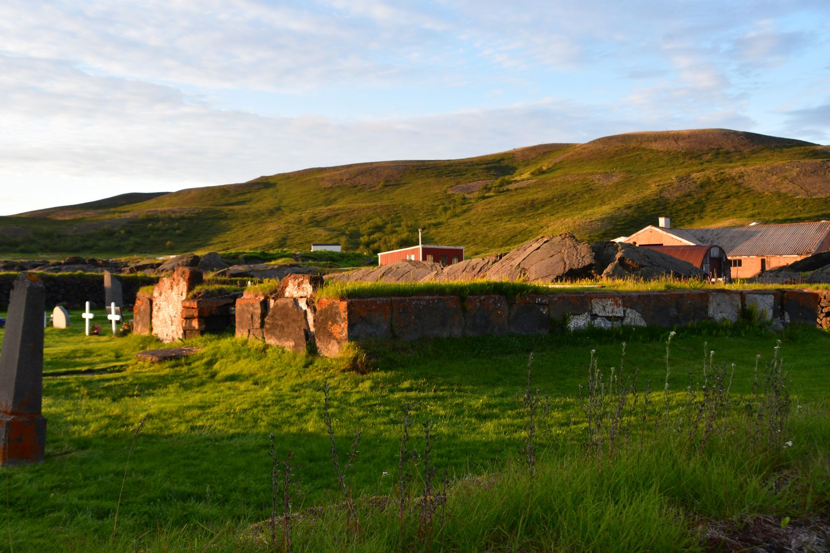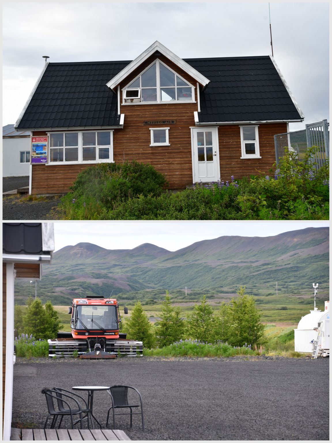 Wir übernachteten auf dem Campingplatz in Reykjahlíð, einem von vielen in dieser Gegend. Uns gefiel das Flughafengebäude mit dem Ratrac nebenan 🙂 Gemäss einer Legende zerstörte ein riesiger Lavastrom die meisten Häuser, aber niemand wurde verletzt, weil die Leute alle in der Kirche waren, und der Lavastrom um diese herum floss.