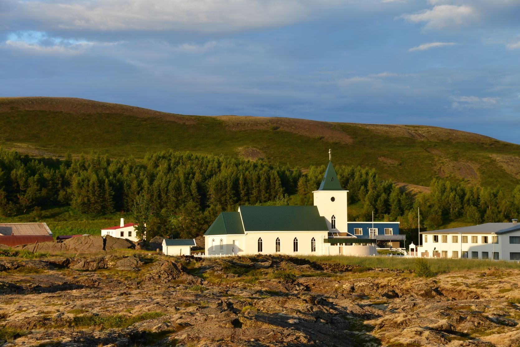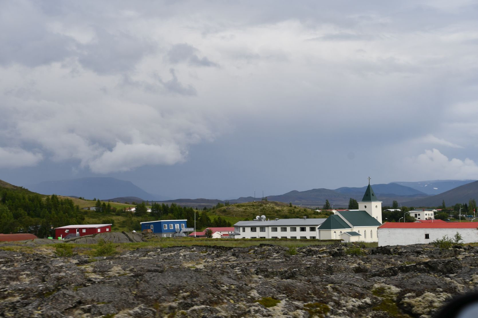 We chose the campsite in Reykjahlíð, one of many in that region. We liked the airport terminal with the snow groomer 🙂 According to a legend a huge lava stream destroyed most of the houses once, but luckily nobody was hurt because everybody was in the church at the time, and the lava flowed around it.