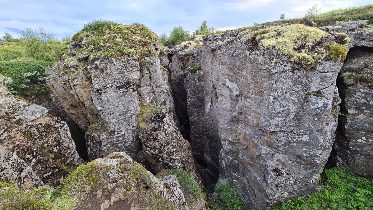 Es war immer noch hell, deshalb besuchten wir Stóragjá, ein Grabenbruch mit warmem Wasser. Etwas weiter weg liegt Grjótagjá, aber die besuchten wir bei unserem letzten Island-Aufenthalt bereits.
