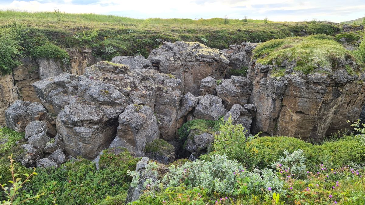 It was still light, so we visited Stóragjá, a fracture zone with warm water. A bit further away is Grjótagjá, but we visited that rift already last time we visited Iceland.