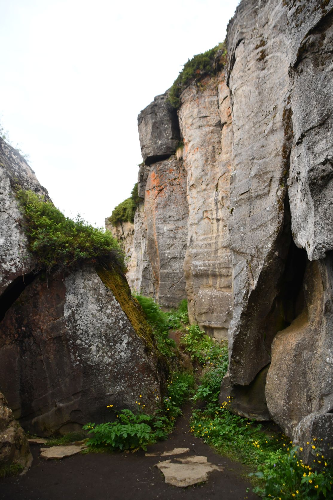 The path runs close to the crumbly rock wall!
